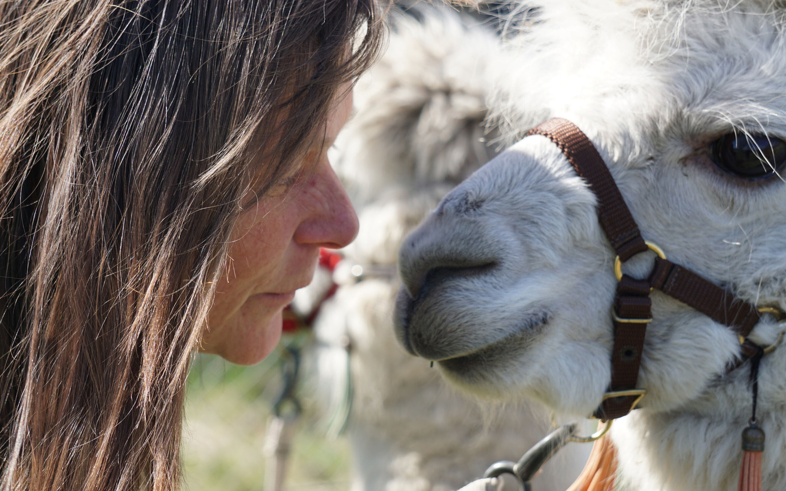 Dialog s alpakami, Foto: Janin Müller, Lizenz: Sandra Müller, WanderLamas Bagenz