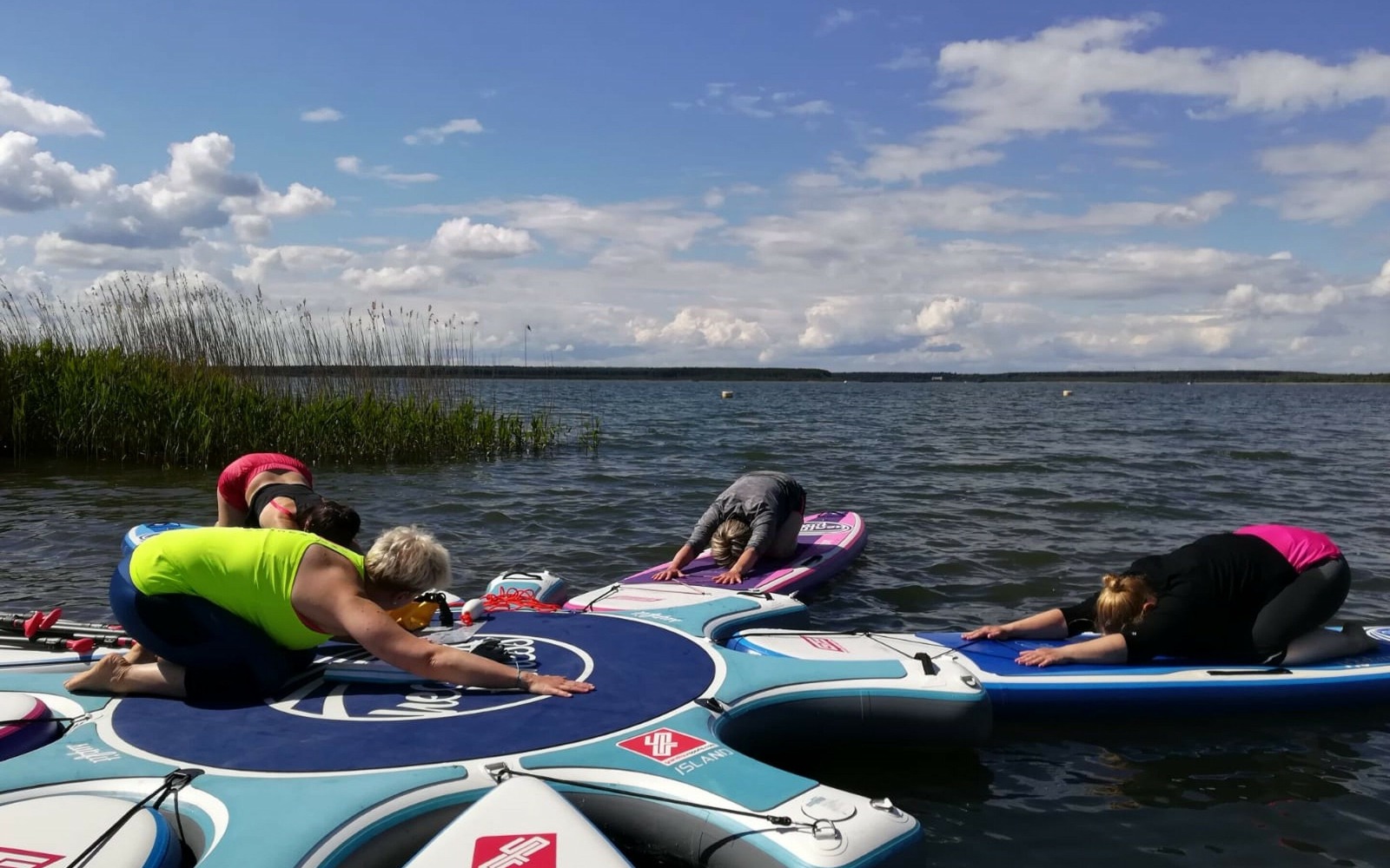 Při cvičení SUP jóga se pádlo na stojáka používá jako plovoucí "podložka na jógu". Vnější nestabilita vody pod SUP prknem automaticky posiluje hluboké svaly, a tím i vnitřní rovnováhu. Příslušné cvičení jógy má proto intenzivnější účinek než na souši. Tento zábavný program trénuje soustředění a trénuje se koncentrace a koordinace a pozornost je zaměřena na přítomnost. Jemné houpání uklidňuje, čerstvý vzduch povzbuzuje a teplo slunečních paprsků dodává vitamín D a mnoho pocitů štěstí. Právě tento okamžik si můžete vychutnat, když splynete se všemi živly a znovu se spojíte se svým tělem.