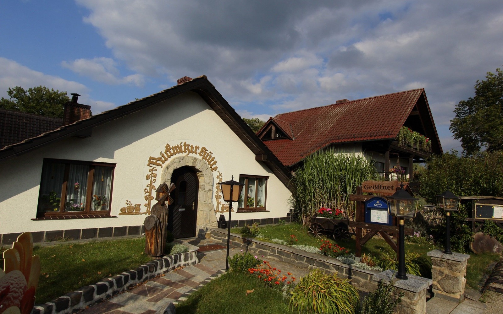 Die ”Hütte“, wie die familienbetriebene Gaststätte liebevoll genannt wird, bietet nicht nur kulinarisch etwas Besonderes: In jahrelanger Arbeit wurde das Gebäude mit dem heimeligen Kamin, den rustikalen Holzmöbeln und den hell verputzten Wänden aus Materialien der Region erbaut. Im angeschlossenen Biergarten erzählen die Kunstwerke aus über 100-jährigen Eichenstämmen ihre eigene Geschichte über den Ort Peickwitz.