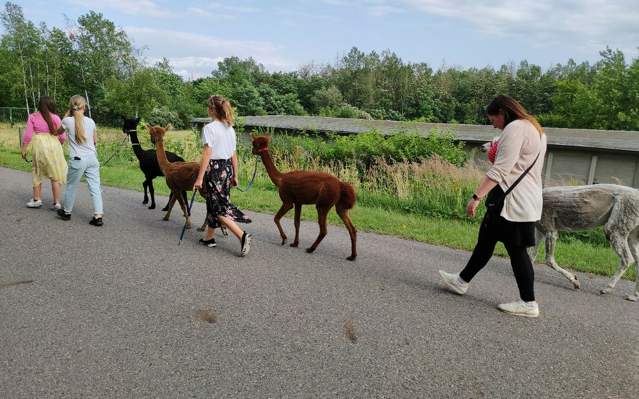 Wandern mit Tieren ist ein ganz besonderes Erlebnis. Im Gegensatz zu den freilebenden Tieren sind die Esel von vom Esel-Wander-Hof Spree-Neiße in Groß Kölzig und Elbe-Elster-Esel in Klingmühl nicht menschenscheu. Auf anderthalb- bis viereinhalbstündigen Wanderungen durch das Lausitzer Seenland lernen Teilnehmer die gelassenen Vierbeiner intensiv kennen. Auch mit Alpakas können Gäste wandern: Cornelia Schnippa von Lausitzleben in Tätzschwitz und Christine Berthold von Weggefährten in Senftenberg bieten ein- bis mehrstündige Touren mit den einfühlsamen kleinen Kamelen durch das Lausitzer Seenland an.