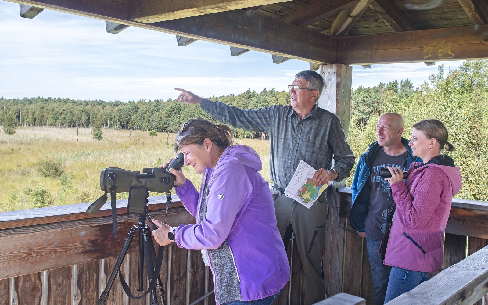 Heute können sich Gäste der Region an einer etwa 3 km langen und ca. 1,5 Stunden langen „Schnuppertour am Rande des Dubringer Moor“ anschließen. Diese startet mit dem qualifizierten Gästeführer an der „Teichwirtschaft Zelder“ und führt entlang der Teichkette zum Aussichtsturm „Dubringer Moor“. Schautafeln geben Hinweise auf die selten sichtbaren Tiere des Moores. Gern können die Teilnehmerinnen und Teilnehmer die eigene Kamera oder das Fernglas mitbringen. Festes Schuhwerk und dem Wetter entsprechende Kleidung werden empfohlen.