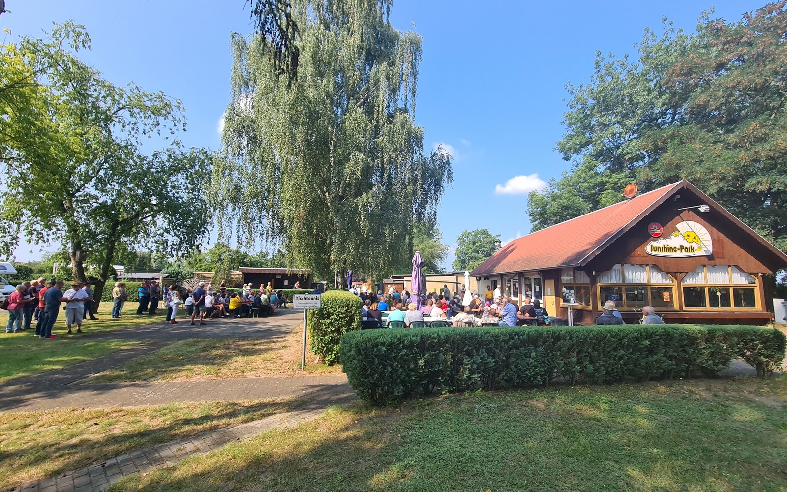 Der Sunshine-Park im Ferienpark Knappensee am Ufer des Knappensees in Groß Särchen lädt die Gäste trotz der Sperrung des Knappensees aufgrund der bergtechnischen Sanierung des Sees zum Verweilen ein. Da sich der Sunshine-Park direkt am Ufer des Knappensees befindet, kann man von hier aus den Fortschritt der Sanierungsarbeiten sehr gut beobachten.