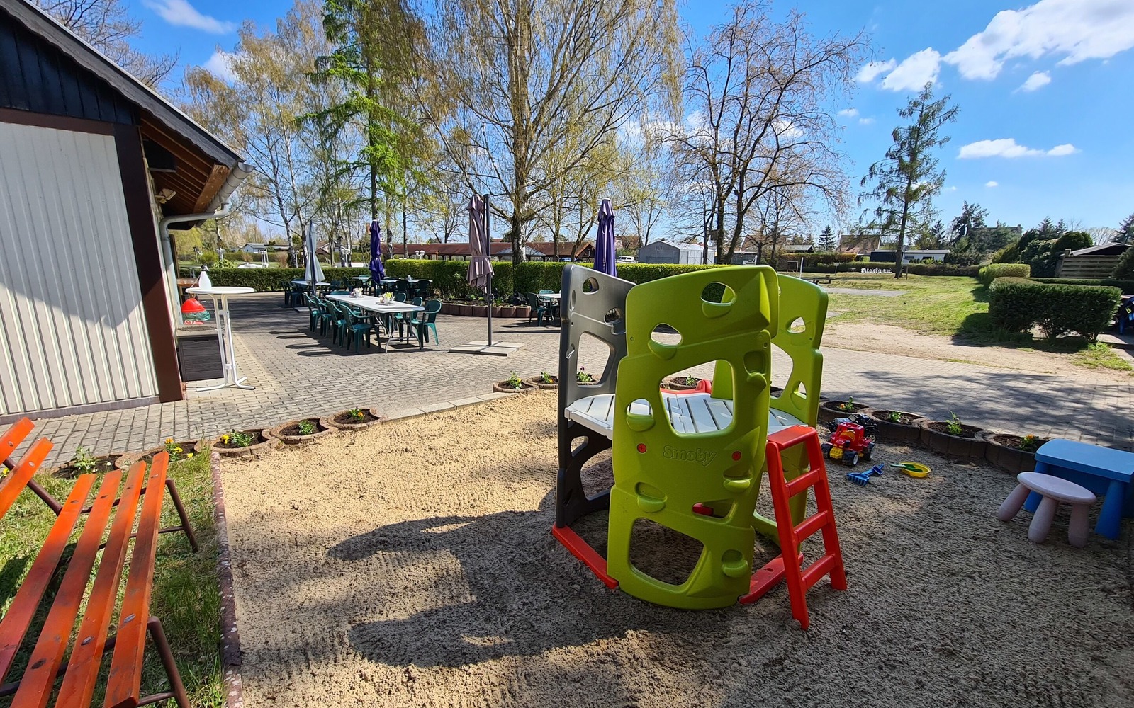 Ob Groß oder Klein, die Minigolfanlage lädt alle zum Spielen ein. Während sich der Nachwuchs im 25 Quadratmeter großen Sandkasten mit Rutsche vergnügt, können die Eltern oder Großeltern in Ruhe das Angebot der Gastronomie genießen.