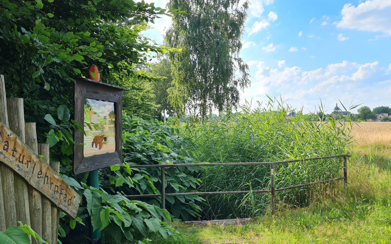 Dem „gelben Strich“ aus dem Ort folgend, führt der Weg zum Naturlehrpfad Borstel-Weg. Gerade für die Jüngeren ist der von Kindern für Kinder geschaffene Pfad ein Highlight. Im Kulturzentrum kann sich dafür zu Beginn eine Rätselpostkarte abgeholt werden, die bei richtiger Lösung auch eine Überraschung verspricht. Dem Maskottchen Igel Borstel und den verschiedenen Stationen wird dann schließlich bis zum Halbendorfer See gefolgt. Ab hier beginnt der aktive Part des Weges. Um den See herum gibt es nämlich einen Trimm-Dich-Pfad mit insgesamt 20 verschiedenen Stationen, an denen sich sportlich betätigt werden kann. Vorbei an der Wakeboard- und Wasserskianlage „Wake and Beach“ führt der Weg dem „blauen Strich“ und Igel Borstel folgend zurück nach Schleife.