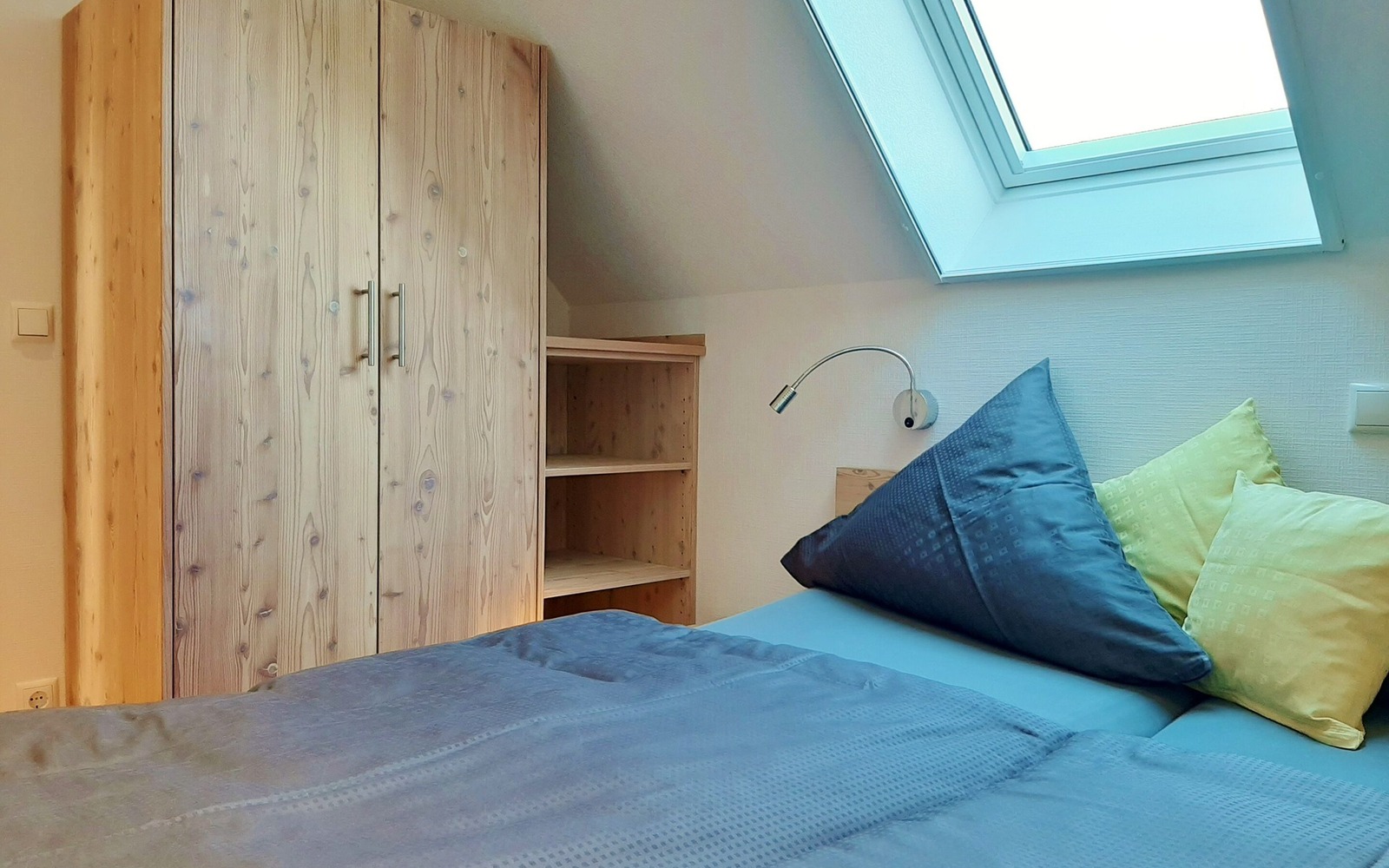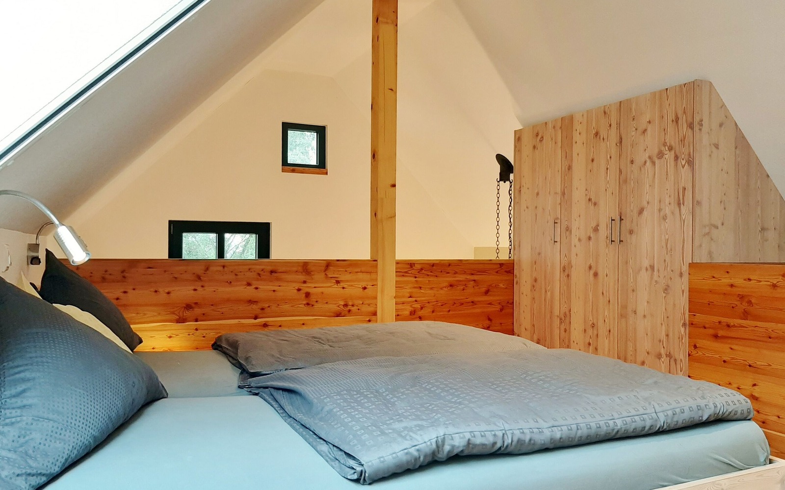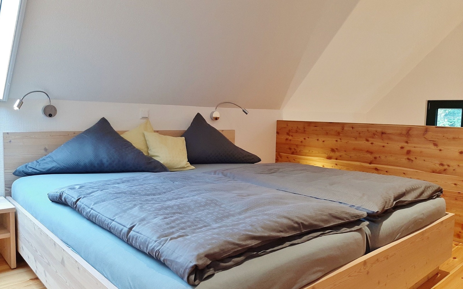 Der Ferienhof besteht aus 2 Ferienhäusern mit insgesamt 3 großzügigen, komfortablen Ferienwohnungen, die mit 4 Sternen klassifiziert sind. Das Feriendoppelhaus mit 2 identischen Ferienwohnungen (je 35 m²) ist für jeweils 2 Personen ausgelegt, es eignet sich daher auch gut für befreundete Paare. Beide Ferienwohnungen verfügen im Wohnbereich über eine modern integrierte Küchenzeile, Essbereich und eine Eckcouch. In der oberen Etage befindet sich eine offene Galerie mit einem Doppelbett und großen Kleiderschrank, der ideale Platz zum Träumen.