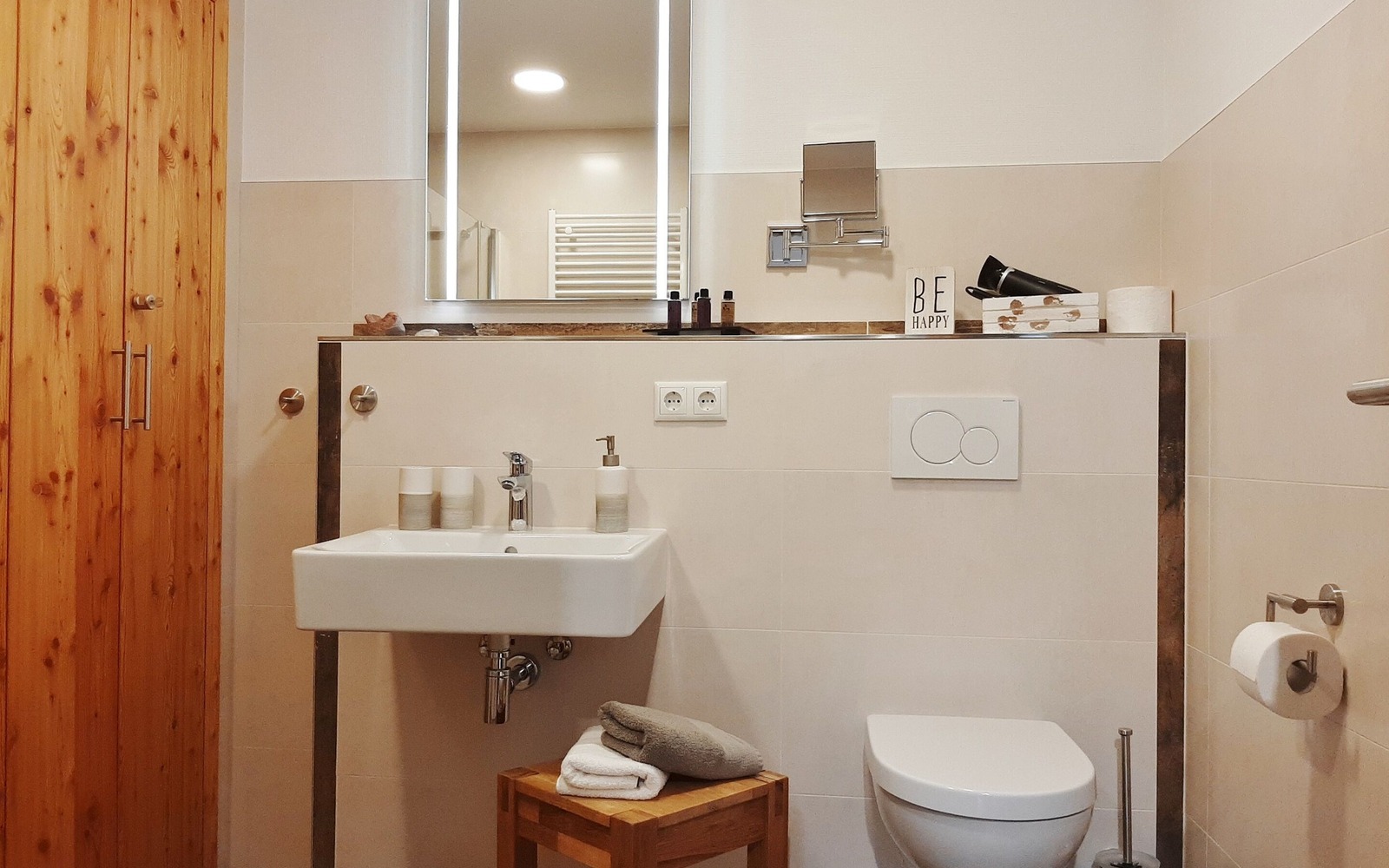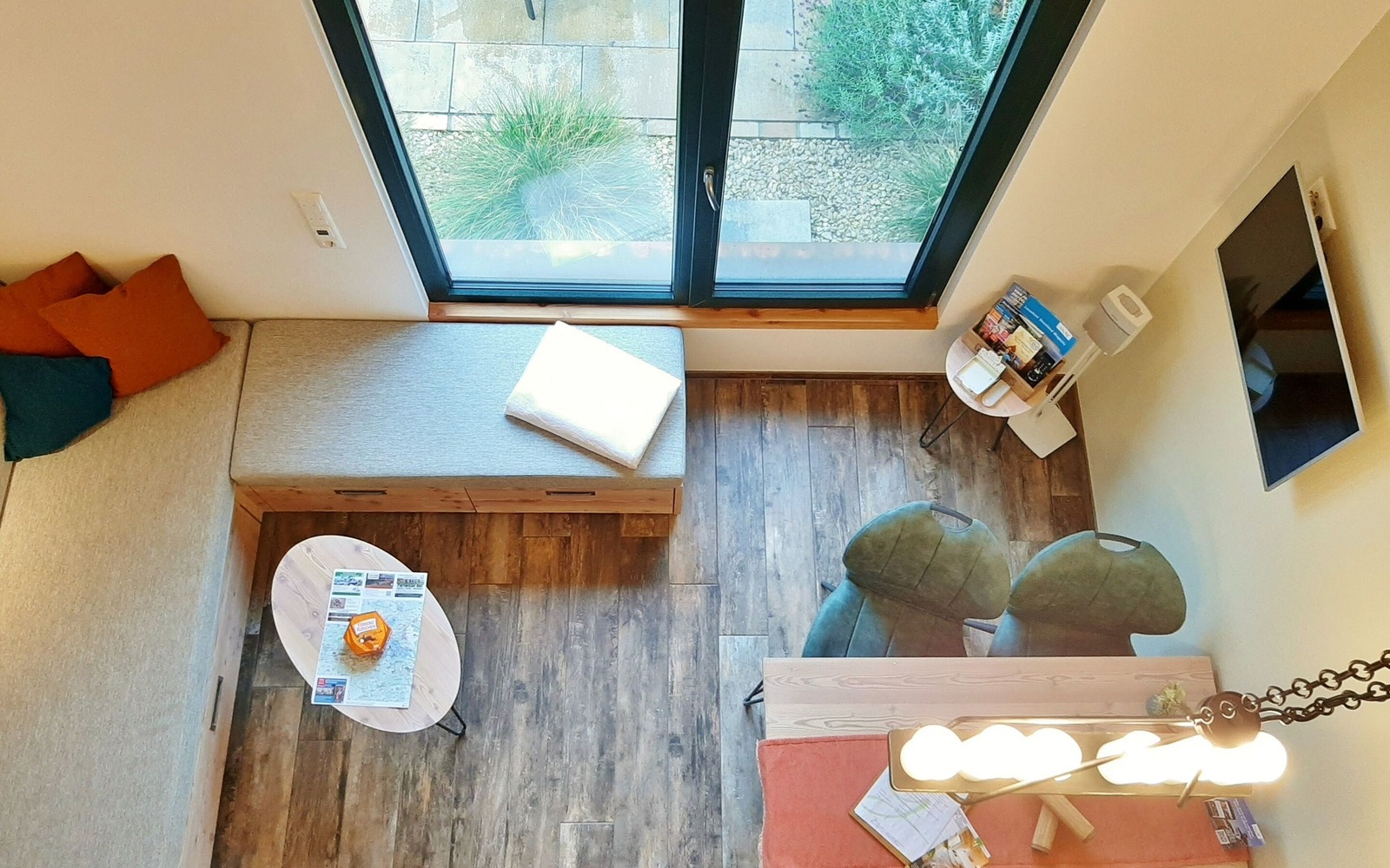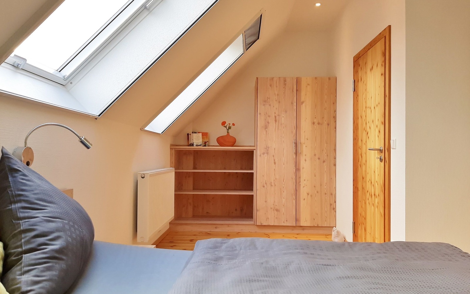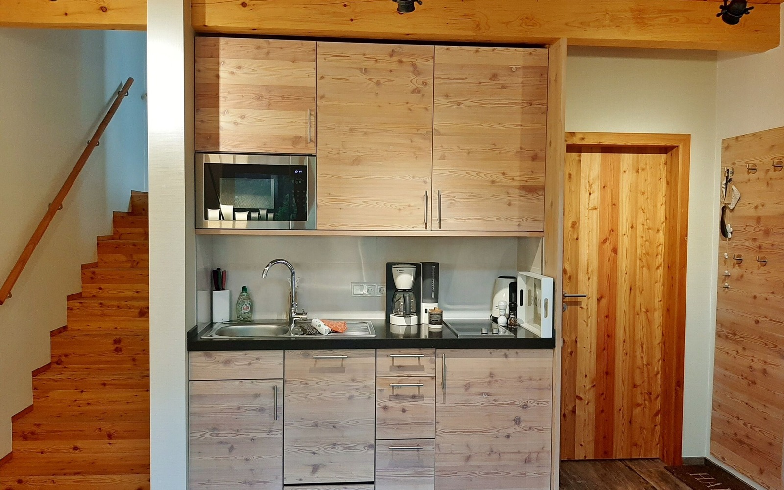 Der Ferienhof besteht aus 2 Ferienhäusern mit insgesamt 3 großzügigen, komfortablen Ferienwohnungen, die mit 4 Sternen klassifiziert sind. Das Feriendoppelhaus mit 2 identischen Ferienwohnungen (je 35 m²) ist für jeweils 2 Personen ausgelegt, es eignet sich daher auch gut für befreundete Paare. Beide Ferienwohnungen verfügen im Wohnbereich über eine modern integrierte Küchenzeile, Essbereich und eine Eckcouch. In der oberen Etage befindet sich eine offene Galerie mit einem Doppelbett und großen Kleiderschrank, der ideale Platz zum Träumen.