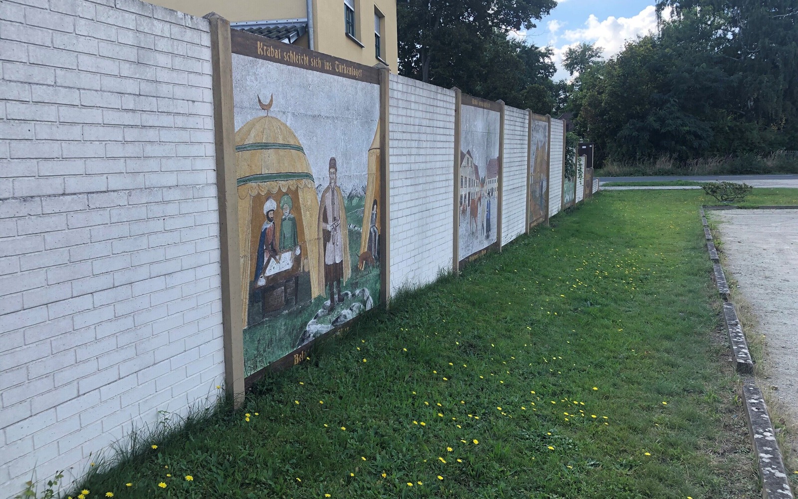 In unmittelbarer Nähe des historischen Vorwerk Haus, in dem die sorbische Sagenfigur Krabat gelebt und gewirkt haben soll, befinden sich ein Kräutergarten mit Insektenhotel sowie die Handwerkerscheune, die das Ensemble ergänzen. Der Spielplatz liegt in naturnaher Umgebung und ist für Familien gut erreichbar. Auch eine Parkmöglichkeit ist in unmittelbarer Nähe vorhanden. Die Wandmalereien am Parkplatz stellen die Stationen und das Leben von Krabat auf besondere Weise dar.