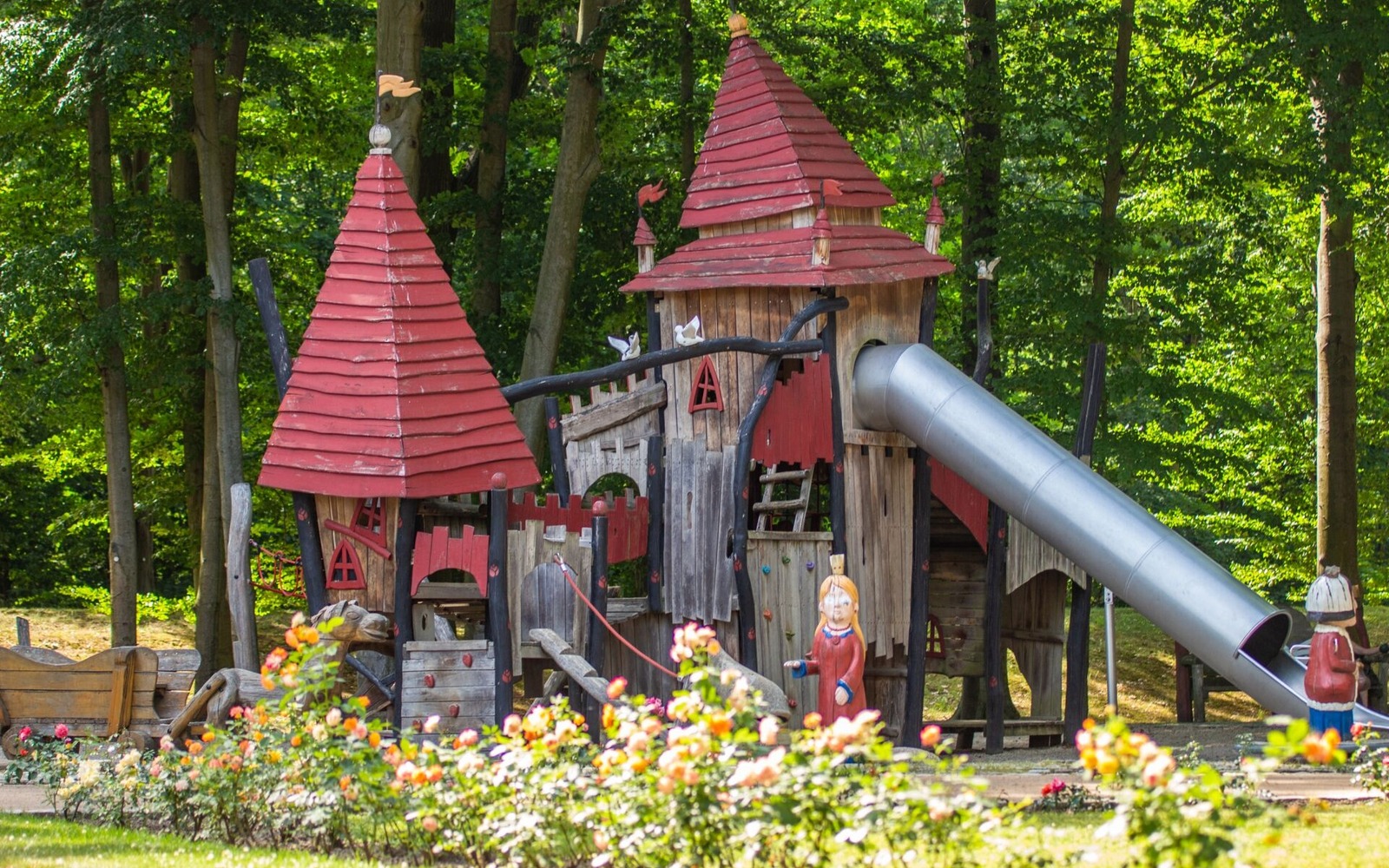 Der Dornröschenspielplatz im Wehrinselpark des Ostdeutschen Rosengarten Forst (Lausitz) bietet auf rund 2.000 m² ein märchenhaftes Spielerlebnis für Kinder. Im Schatten hoher Bäume und umgeben von Kletterrosen und Rosenhecken lädt ein fantasievoll gestaltetes Spielgelände zu Bewegung, Entdeckung und Abenteuer ein. Herzstück ist ein großes Märchenschloss mit vielfältigen Spielmöglichkeiten.