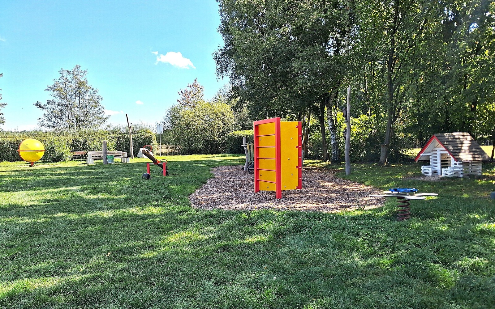Der Spielplatz „Rabennest“ wurde am 1. Juni 2022 feierlich eröffnet und liegt idyllisch im Grünen. Die großzügige Anlage bietet abwechslungsreiche Spiel- und Bewegungsmöglichkeiten für Kinder verschiedener Altersgruppen. Zu den Highlights gehören Kletter- und Balanciergeräte aus robustem Holz, Schaukelanlagen, eine Wippe sowie eine auffällige gelbe Spielkugel zum Drehen. Außerdem gibt es einen Sandspielbereich, eine kleine Boulderwand und ein Holzhäuschen, das zum Spielen einlädt.