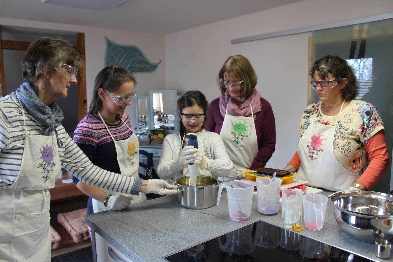 Wer lieber mit natürlichen Rohstoffen arbeitet und sich für duftende Pflegeprodukte begeistert, findet in Neupetershain die perfekte Ergänzung: die AliSavon Seifenmanufaktur. In einem liebevoll eingerichteten Atelier können bis zu sechs Teilnehmerinnen bei einem zweieinhalbstündigen Workshop ihre eigenen Seifen nach alter Tradition sieden – aus hochwertigen, natürlichen Zutaten und mit ganz persönlicher Note. Ob Lavendel, Zitrus oder Rosenduft – die Auswahl ist groß, und die Ergebnisse sind nicht nur pflegend, sondern auch wunderschön.