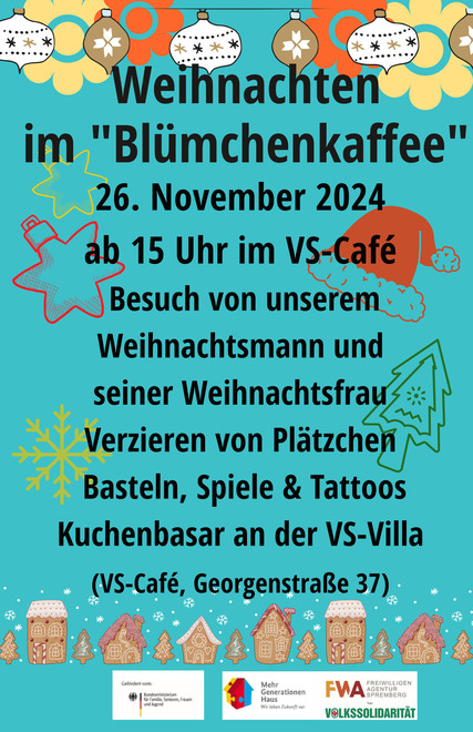 Basteln mit den Weihnachtselfen, Besuch vom Weihnachtsmann und seiner Weihnachtsfrau, Tattoos, Verzieren von Plätzchen – das und mehr gibt es beim nächsten "Blümchenkaffee".
