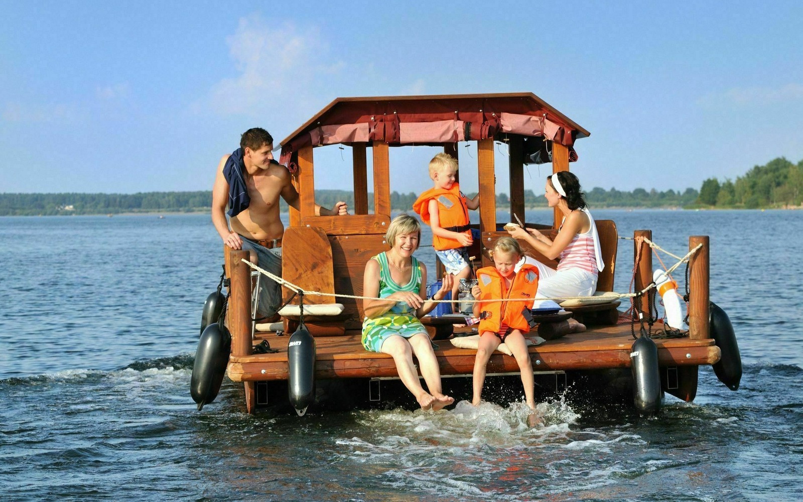 Ein Abenteuer für die ganze Familie ist eine Floßfahrt. Gehen Sie am Senftenberger See an Bord von führerscheinfreien Flößen und erfahren die Freiheit und Weite der neuen Seen. Mieten Sie sich ein Floß für einen Tagausflug oder inklusive Übernachtung. Wer nicht nur am Strand, sondern auch auf dem Wasser grillen möchte, kann am Geierswalder See außerdem runde, führerscheinfreie Grillboote mieten und in See stechen.
