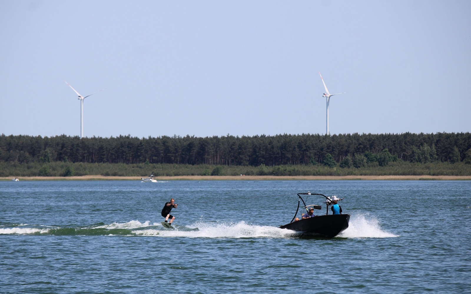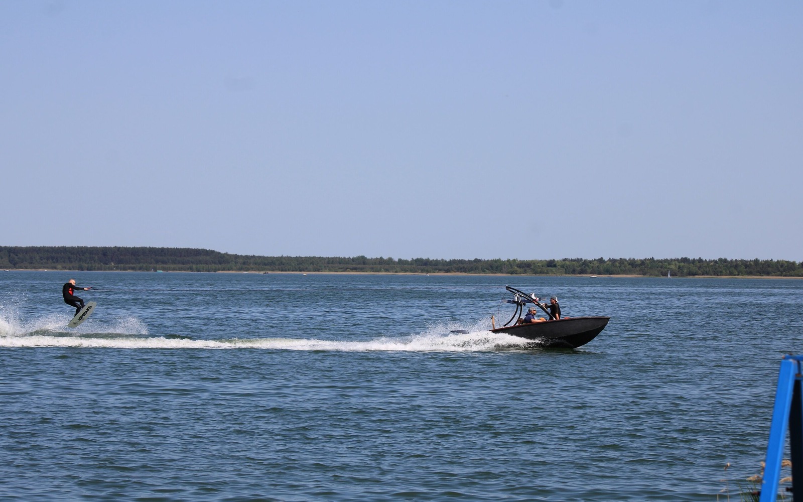Bei Wake and More am Geierswalder See kommen nicht nur Einsteiger, sondern auch Fortgeschrittene ganz auf Ihre Kosten. In einem großen durch Bojen abgetrennten Bereich kann der Wasserspaß entweder auf Wasserski oder Wakeboard hautnah erlebt werden. Für ganz Mutige ist auch Wakesurfen möglich, wo man ohne Seil auf der Welle hinter dem Boot entlang surft.