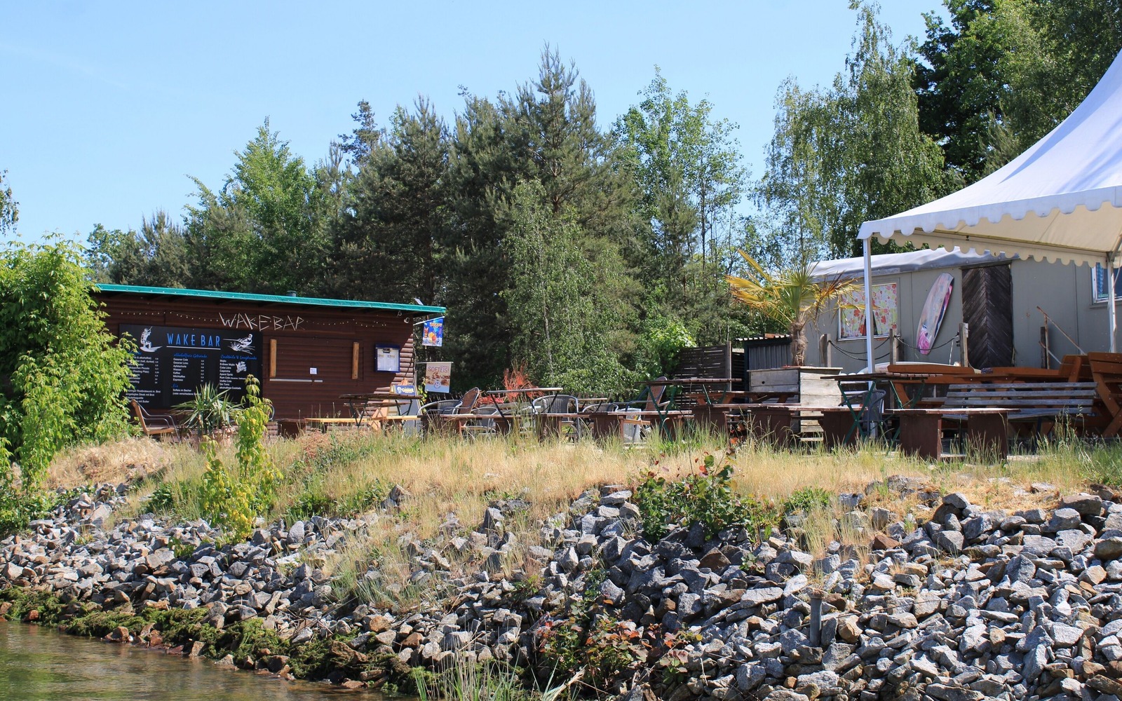 Anschließend oder währenddessen können in der Wake-Bar auf dem Gelände kühle Getränke und ein Imbiss eingenommen werden. Entspannt werden kann sich auf der Strandterrasse, welche einen wunderschönen Blick über den Geierswalder See bietet und wo man das Wasserspektakel aus sicherer Entfernung bestaunen kann.