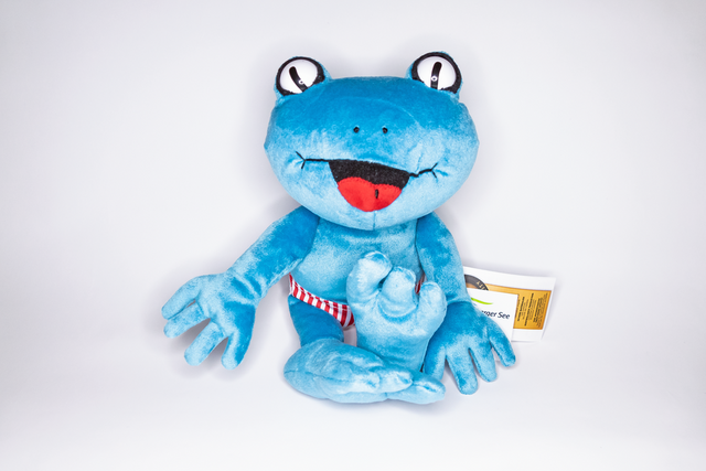 Froggi ist das Maskottchen vom Senftenberger See und ist vor allem im Familienpark öfters zu sehen. Als Plüschtier ist der knuddelige blaue Frosch immer mit dabei.