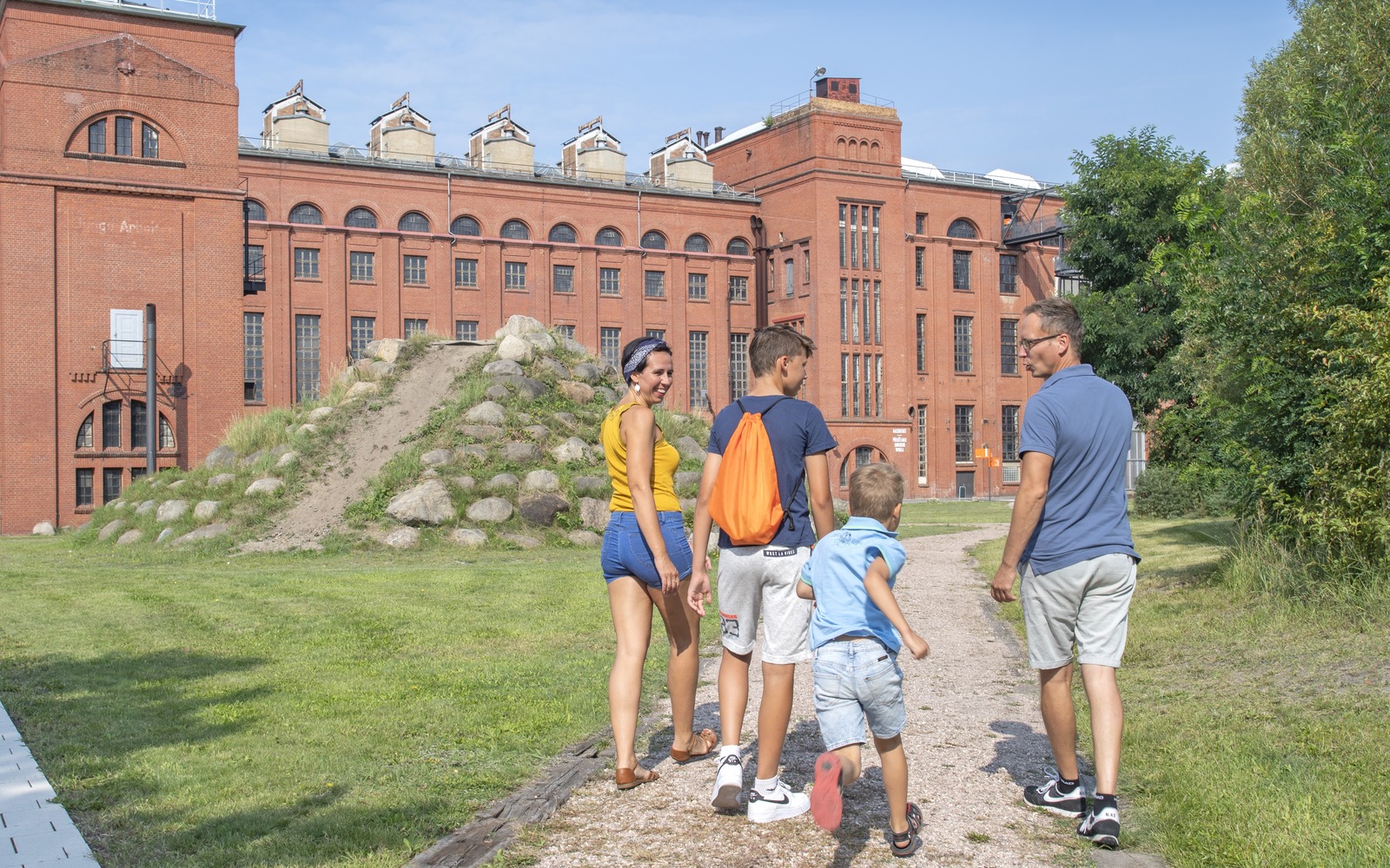 Familie mit Forscherrucksack in der Energiefabrik Knappenrode, Foto: Nada Quenzel