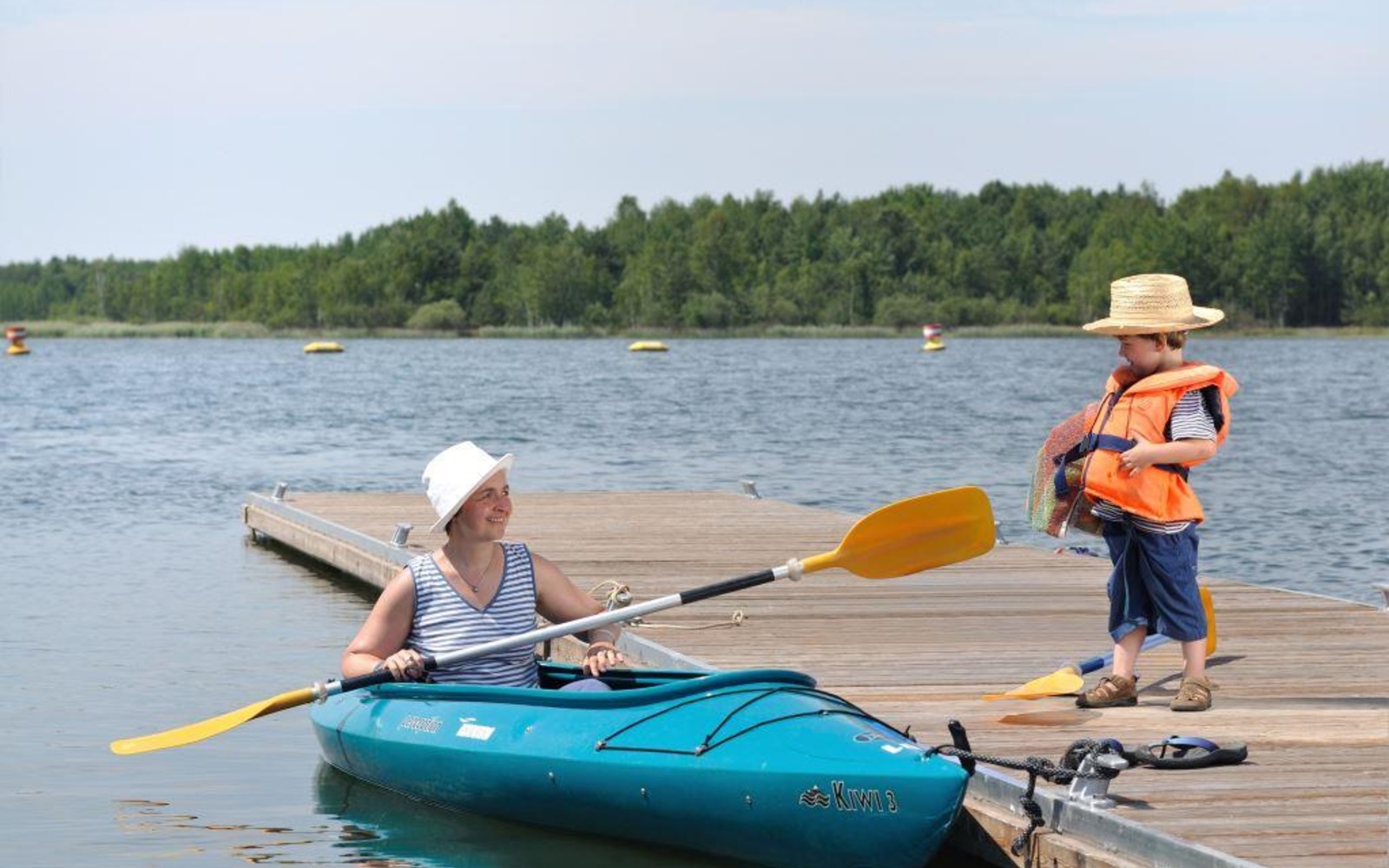Familien, die es gemütlicher angehen wollen, leihen sich beim Anbieter „Ostufer“ am Geierswalder See Kanus, Tretboote oder Stand-Up-Paddle-Boards aus. Ein Geheimtipp für entspannte Kanutouren mit Kindern ist die einfach zu befahrende Neiße im Osten des Seenlandes. In Guben hält die Bootsvermietung von Expeditours das entsprechende Material bereit.