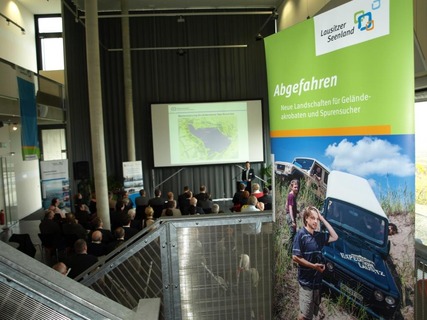 Senftenberg, 06.11.2014 Seit 2007 wird die Regionalkonferenz Lausitzer Seenland einmal im Jahr durchgeführt. In diesem Jahr trafen sich am 6. November über 100 Landesvertreter aus Brandenburg und Sachsen, regionale Politiker sowie kommunale Vertreter und Kooperationspartner auf den IBA Terrassen in Großräschen. Gemeinsam wurde Bilanz gezogen und die Vorhaben sowie Ziele für die Reiseregion Lausitzer Seenland vorgestellt. Das Motto „Der Weg ist das Ziel.“ zog sich wie ein roter Faden durch die Konferenz. Die Zweckverbände Lausitzer Seenland Sachsen und Brandenburg berichteten über den aktuellen Stand der Entwicklung der Wasserwege im schiffbaren Verbund des Seenlandes und gaben einen Ausblick auf 2015. Die LMBV sprach über den aktuellen Stand der Sanierung und zu gesperrten bzw. wieder nutzbaren Rad- und Wirtschaftswegen.