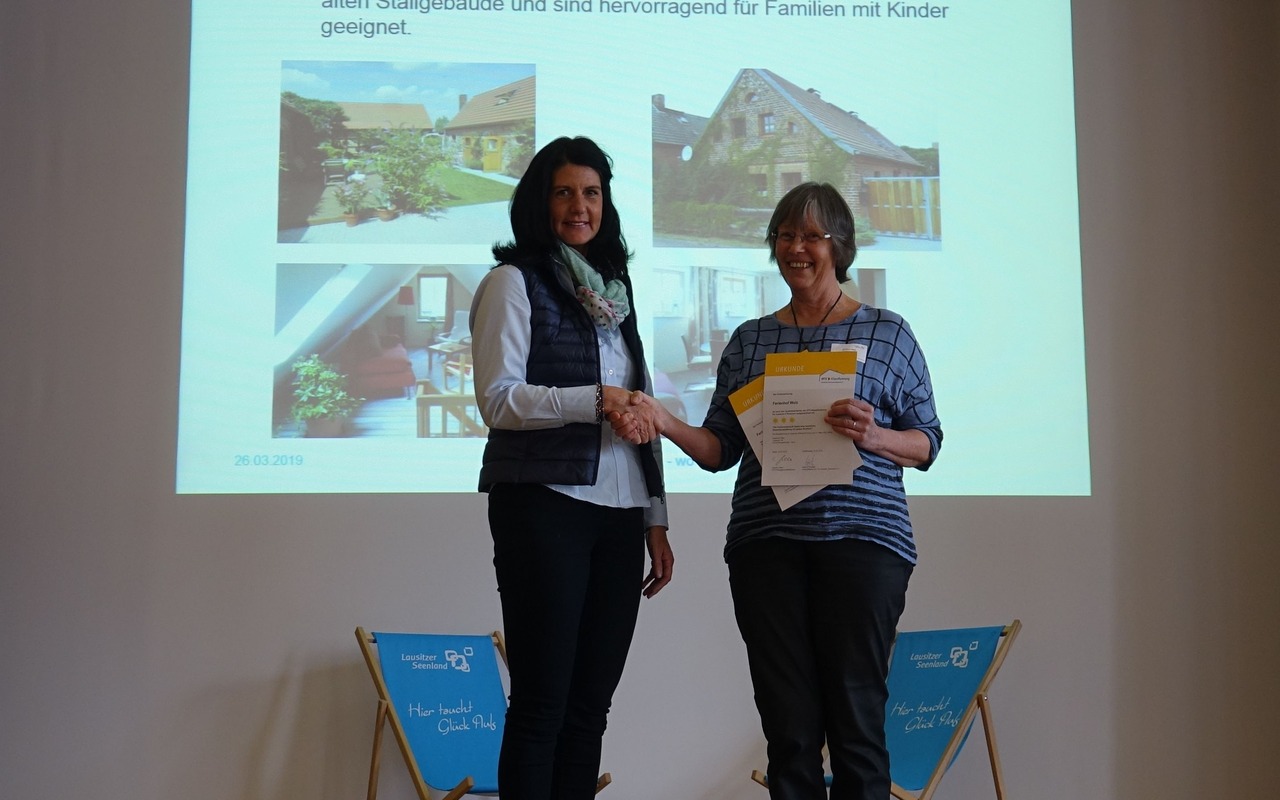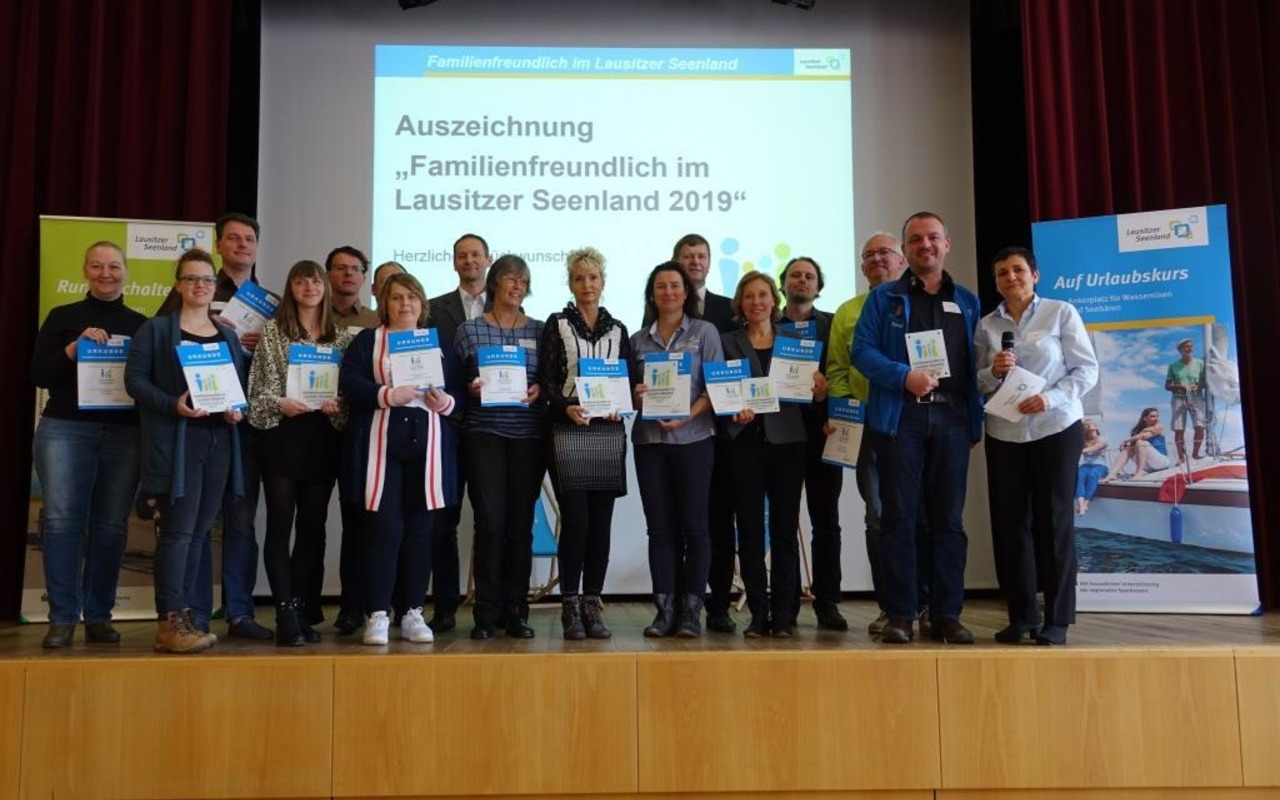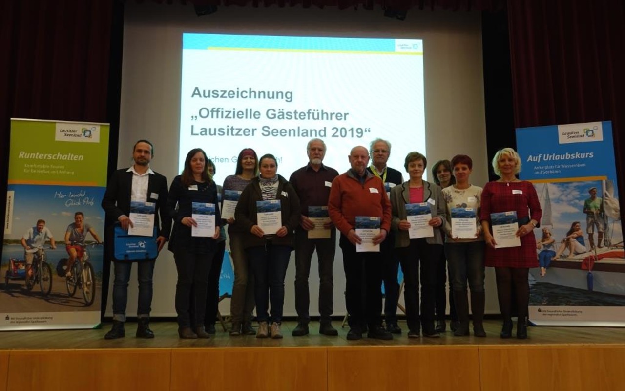 Zum Programm des Tourismustags 2019 gehörte auch die Auszeichnung von touristischen Anbietern und Gastgebern. Die Qualitätsarbeit ist ein grundlegender Baustein, der kontinuierlich im Fokus des Tourismusverbandes Lausitzer Seenland e.V. steht. Ausgezeichnet wurden erstmals 16 familienfreundliche Betriebe, die sich den Anforderungen gestellt und die Qualitätsprüfung nach einheitlichen Kriterien des Tourismusverbandes Lausitzer Seenlandes e.V. bestanden haben. Insgesamt 16 Gästeführer konnten sich über die Auszeichnung als „Offizielle Gästeführer Lausitzer Seenland 2019“ freuen. Sie haben im letzten Jahr das Weiterbildungsprogramm des Verbandes erfolgreich absolviert. Zudem wurden zwei Ferienwohnungen des Ferienhof Welz in Neupetershain erstmals mit drei Sternen und vier Ferienwohnungen des Bett + Bike Eden im Senftenberger Ortsteil Großkoschen zum wiederholten Male mit vier Sternen nach den bundesweiten Kriterien des Deutschen Tourismusverbandes e.V. (DTV) für Ferienhäuser, Ferienwohnungen und Ferienzimmer ausgezeichnet.