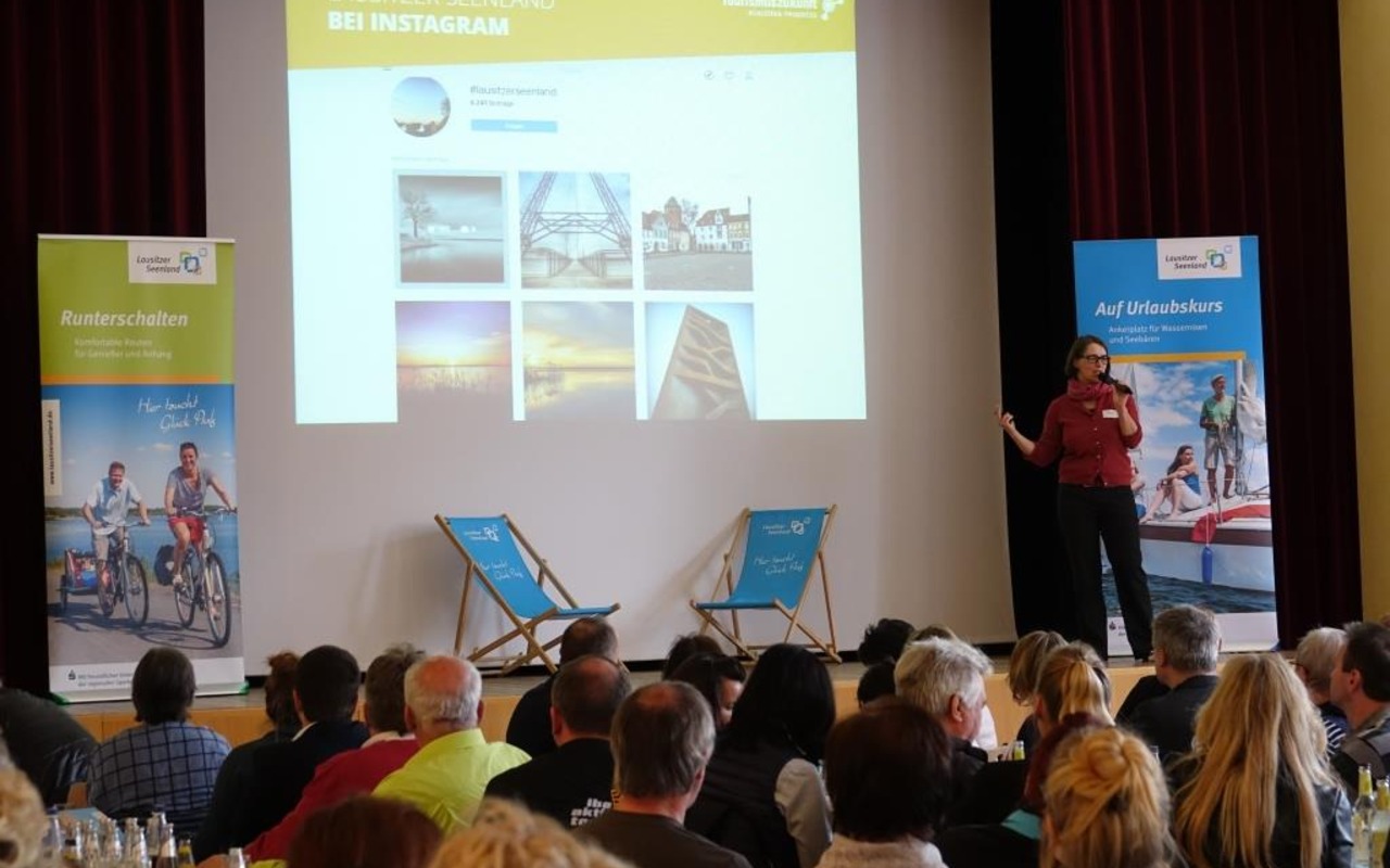 Wie das Lausitzer Seenland seine Gäste digital erreichen kann, wurde in Vorträgen und Workshops thematisiert. Kristine Honig, Beraterin beim Unternehmen Tourismuszukunft und Expertin für Tourismusmarketing und Social Media beantwortete in ihrem Impulsvortrag die Frage „Digitalisierung, Online, Social Media – warum das Ganze?“.