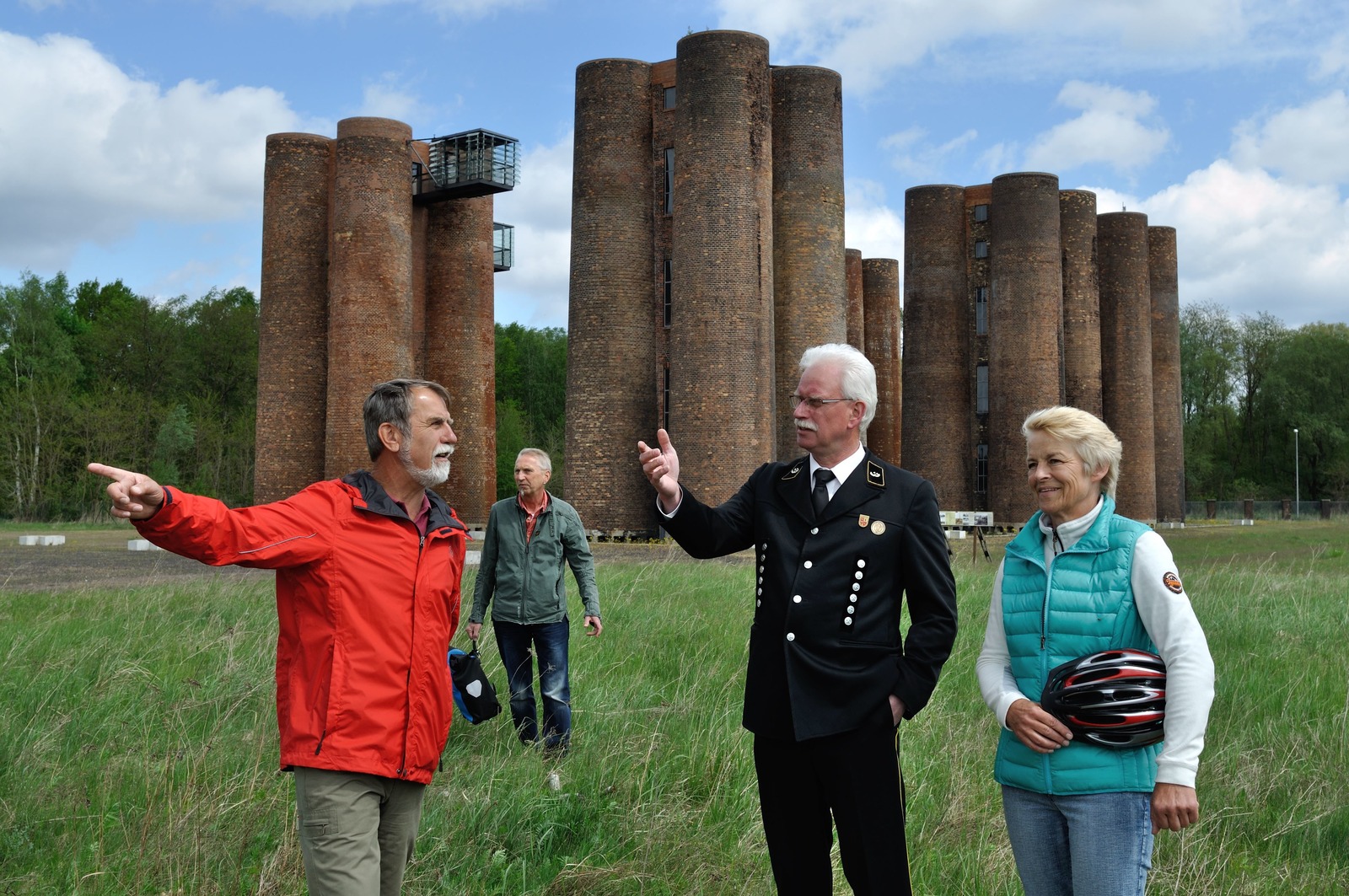 Die 22 Meter hohen Klinkertürme sind die Reste einer Kokereianlage, der ersten ihrer Art weltweit. 1991 wurde sie stillgelegt. Heute begleiten Gästeführer Interessierte auf die verglaste Aussichtskanzel.