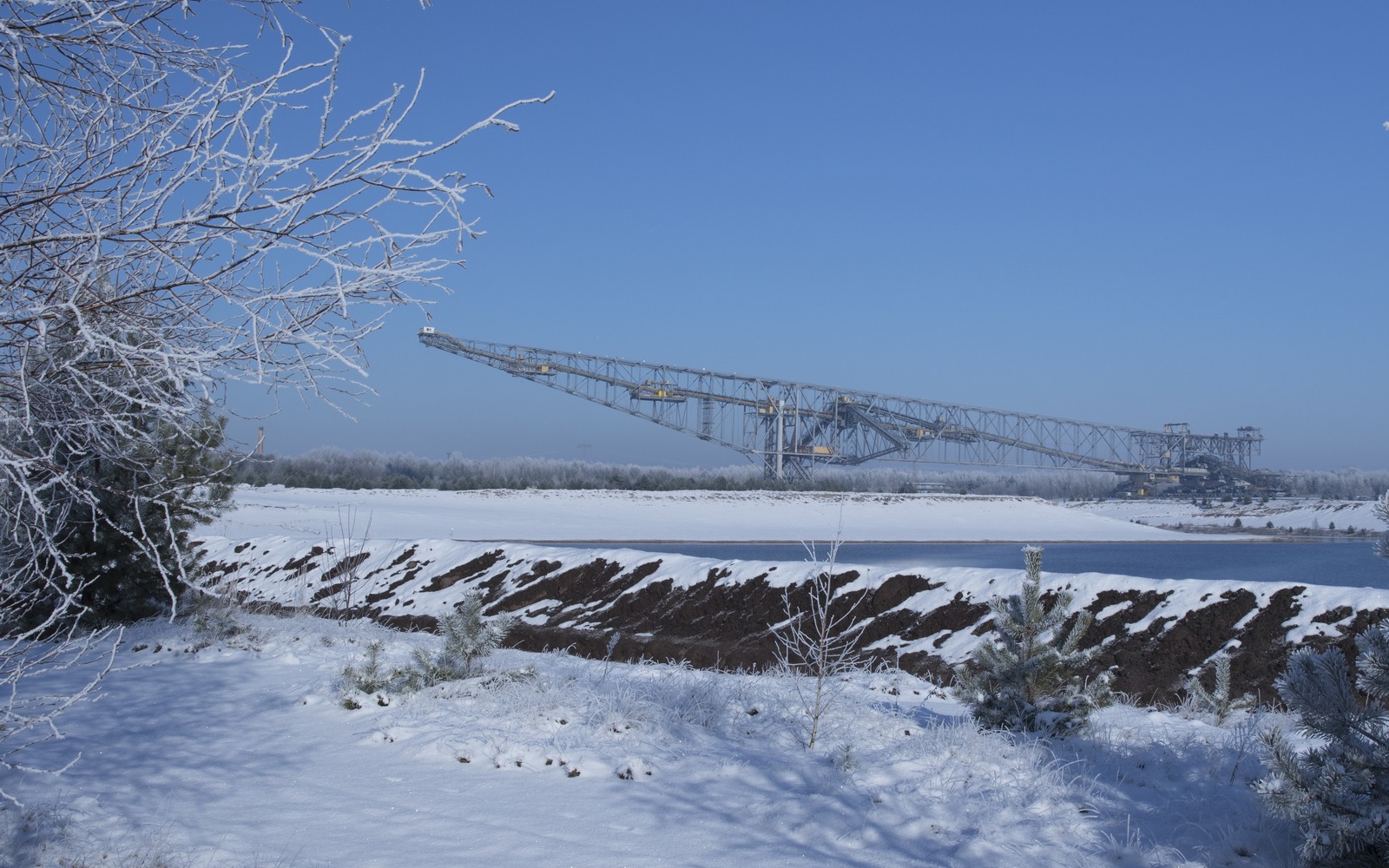 Besucherbergwerk F60 am Bergheider See im Winter, Foto; Kathrin Winkler