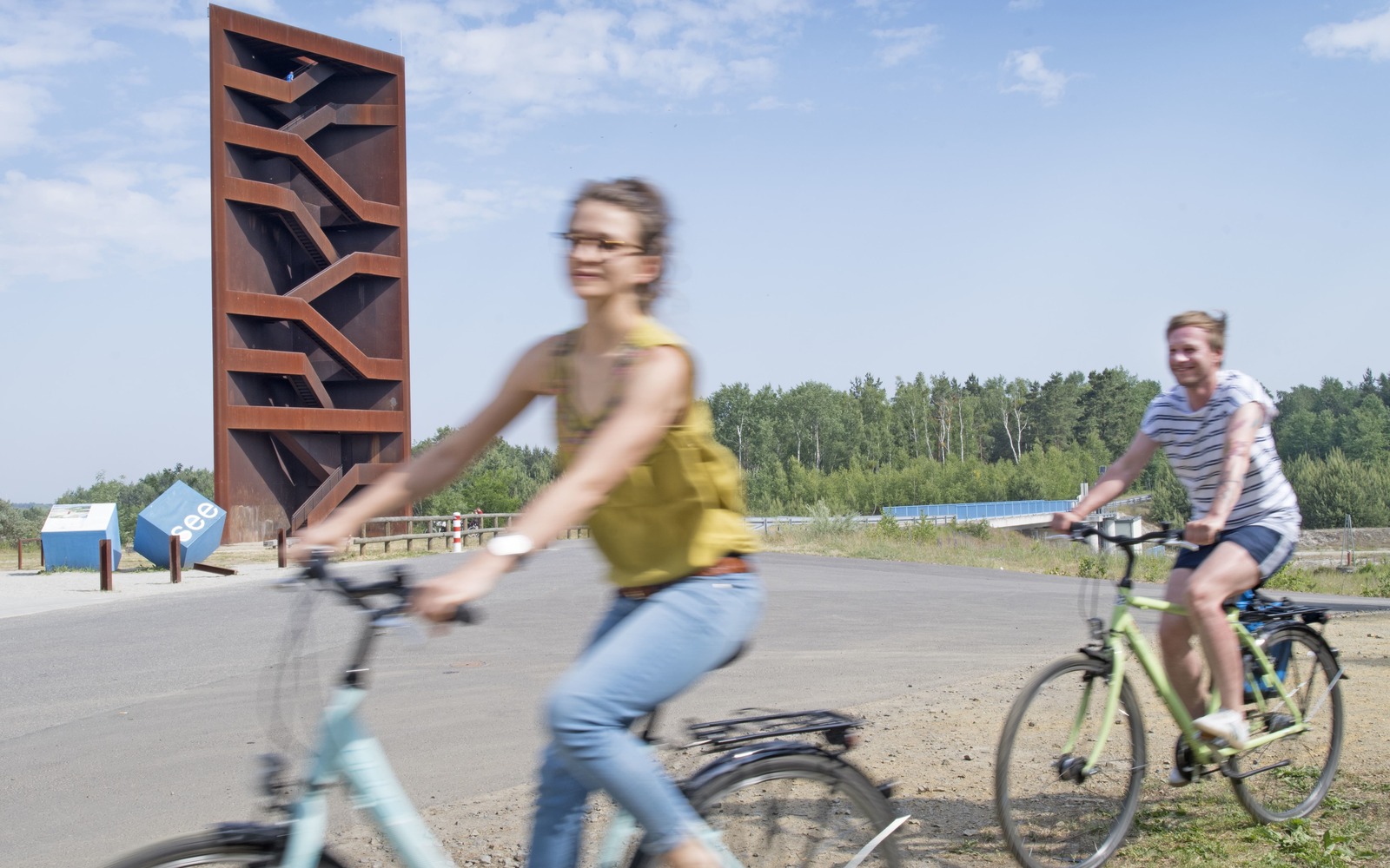 Radfahrern bieten sich auf leichten Touren um die Seen unterschiedlicher Länge immer wieder spannende Ein- und Ausblicke. Die Wege sind breit, asphaltiert und überwiegend flach. Rundkurse führen um den Senftenberger See (18 km), Geierswalder See (16 km) oder Partwitzer See (21 km). Mieträder können in Bahnhofsnähe reserviert werden.