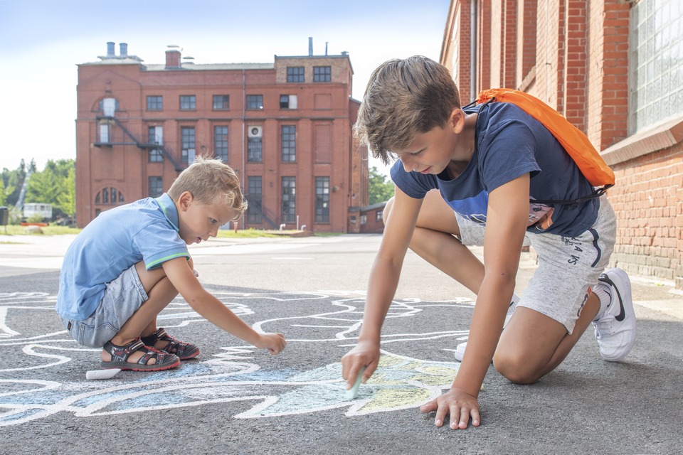 • Energiefabrik Knappenrode Kinder zeichnen mit Kreide© Tourismusverband Lausitzer Seenland, Nada Quenzel (JPG; 5,18 MB)