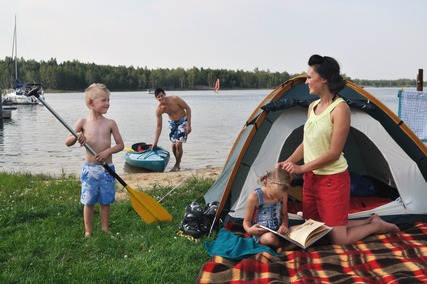 Familie mit Kanu und Zelt im Lausitzer Seenland© Tourismusverband Lausitzer Seenland e.V., Nada Quenzel (JPG; 1,64 MB)