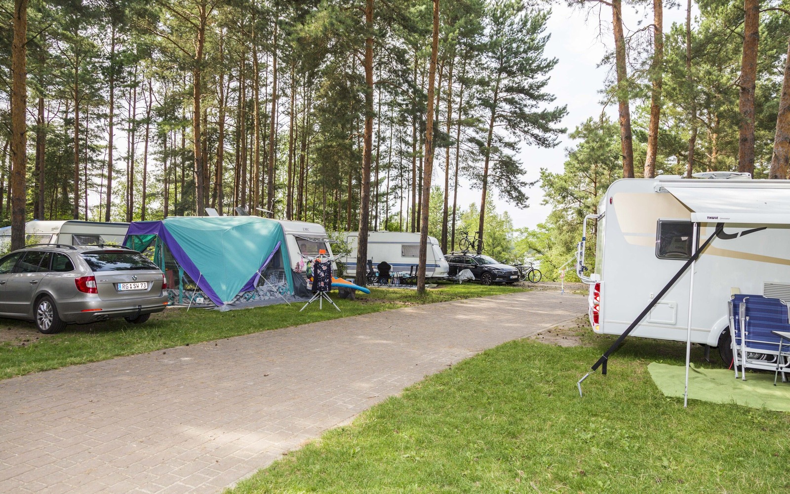 Der familienfreundliche 5-Sterne-Campingplatz befindet sich inmitten eines Kiefernwaldes mit eigenem flach abfallendem Sandstrand. Die parzellierten Standplätze unterteilen sich in zwei Kategorien. Die Familienkomfortplätze auf Waldboden verfügen über einen direkten Strom-, Wasser-, Abwasser- und TV-Anschluss und befinden sich in Wassernähe. Die schattigen Waldplätze bieten ebenfalls einen Stromanschluss sowie eine Wasserzapfstelle. 5 Wohnmobilstellplätze befinden sich außerhalb der Anlage. Kinder bis 15 Jahre campen in familiärer Begleitung kostenfrei. Den Gästen stehen 6 Sanitärgebäude mit Kinderwaschland und Babybad sowie Koch- und Waschgelegenheiten zur Verfügung.