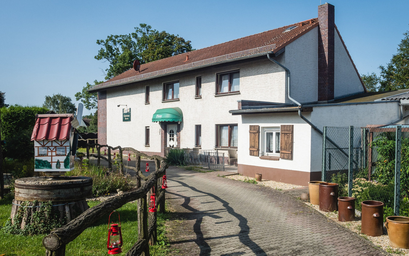 The quaint guest house in Dollenchen has been owned by the Stuckatz family since 1912. Its quiet yet easy to reach location make it a good base for a varied holiday in the Lausitz region or for a short stopover. An 11 kilowatt charging station is provided at the guest house for those arriving with an electric car, and cyclists with e-bikes can also charge their batteries on site.