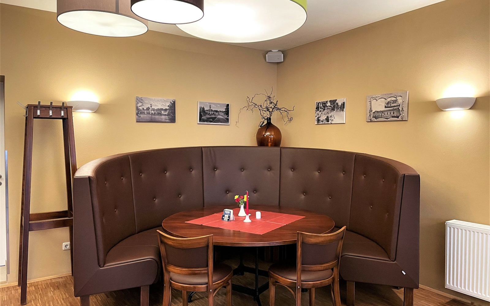 Today's restaurant and guesthouse "Zur Friedenseiche" has been in the family since May 1931 and was acquired by the grandfather Karl Schenk. After the property had been expanded again and again, demolition and new construction of the restaurant building were on the agenda with the 2nd generation in the 1970s. It was not until the mid-1990s that the guesthouse was then expanded in the attic of the building. Today the restaurant with the hall, the fireplace room, the guest room and the beer garden offers space for family celebrations, relaxed lunches or dinners with business partners or friends and much more. Our hall is popular for larger events such as weddings, dances, graduation parties and concerts. From May to the end of October, the beer garden is open and the crown of the "Peace Oak" provides a shady spot for guests.