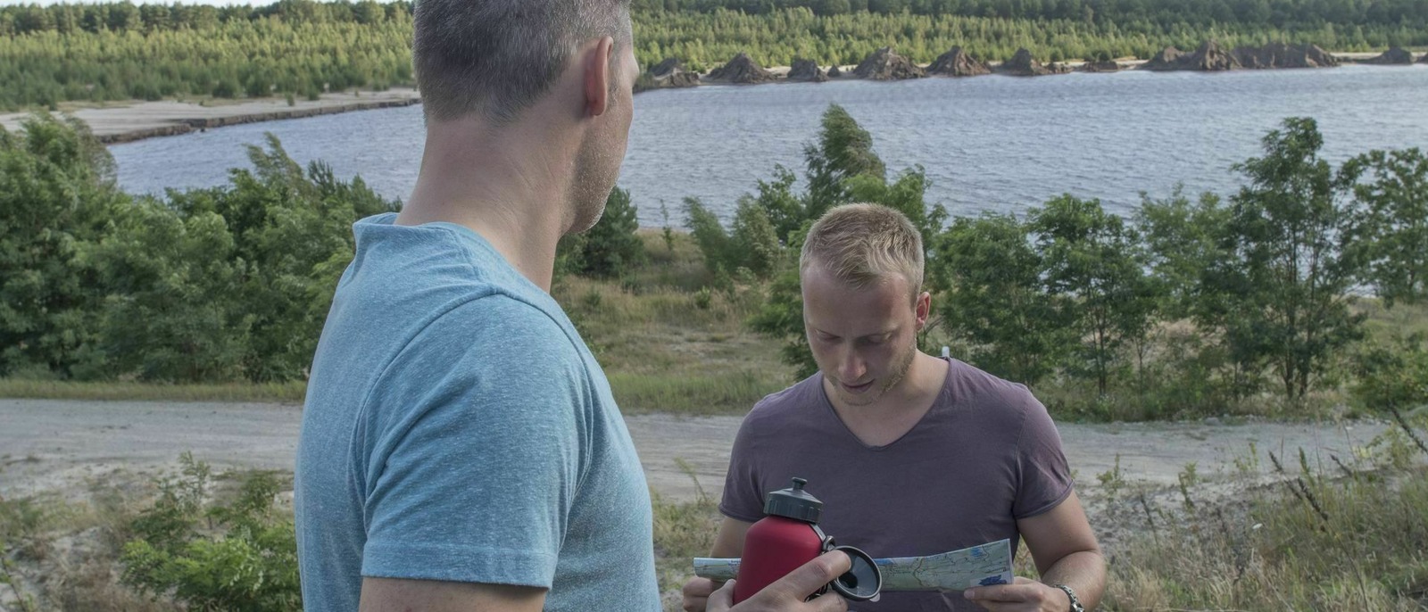 The new lakes stretch out like a string of pearls on the first leg towards Spremberg, hinting at how much fun it will be to sail across the network of lakes on a pleasure craft or sightseeing boat when the project is completed. The sun shimmers on the lakes and halfway along the route you can hear the water falling into what will become Lake Bluno. The water is still several metres short of its final level, and sandy, earth-coloured mounds peek out on the bank opposite. They are the remnants of opencast mining. “What a sight!” says a surprised Felix, who is cycling the Seenland Route with two friends. Matthias agrees: “You don’t see that every day.
