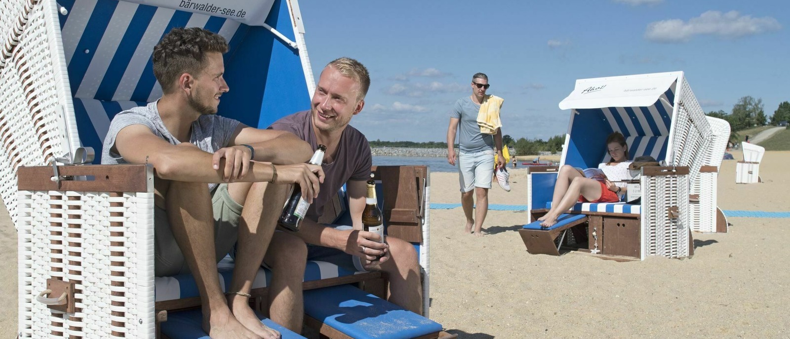 The sun is shining. Lake Bärwalde, with its extensive sandy beaches and clear water, provides the perfect opportunity for a break. When they reach Boxberg beach, all three of them strip off and jump into the lake. But there’s much more to enjoy at Lake Bärwalde than swimming. How about in-line skating on the circular trail around the lake, open-air performances at Theater im Ohr, a spot of sailing or chartering a motorboat? What was meant to be a short break turns into two long hours by the lake. Clemens is dozing in a wicker beach chair: “I love it here!”