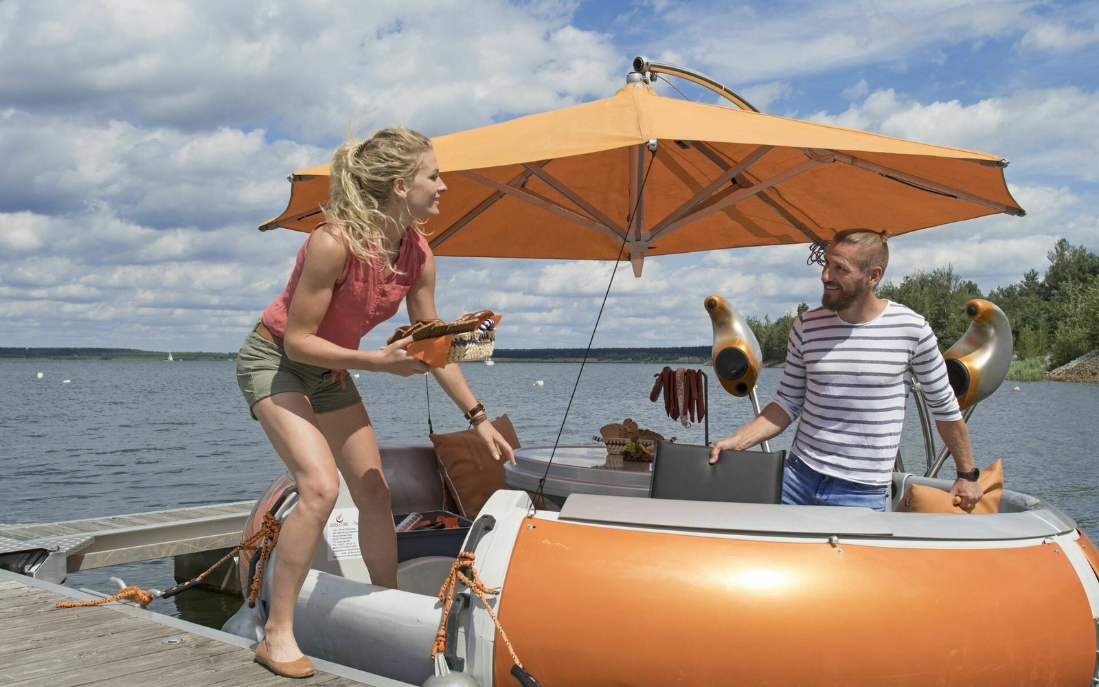 Barbecue boat hire at Lake Geierswalde; photo: Nada Quenzel