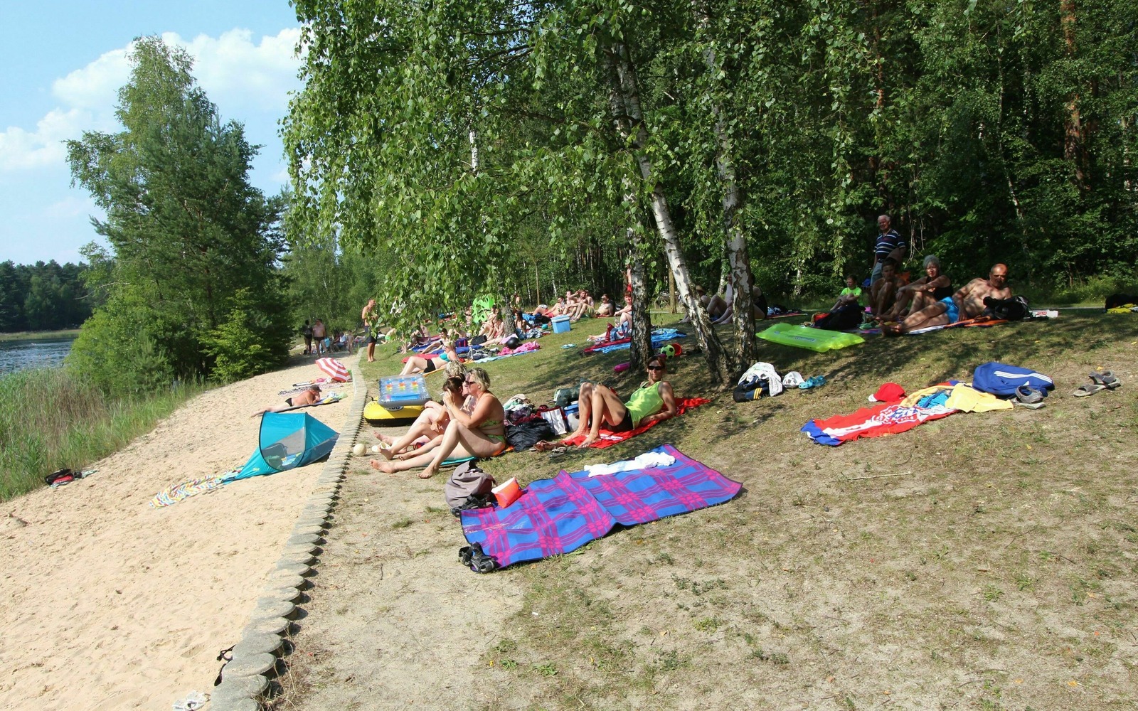 The lake has sandy beaches surrounded by trees that provide shade. The water quality of the lake is good. The beaches are not supervised.