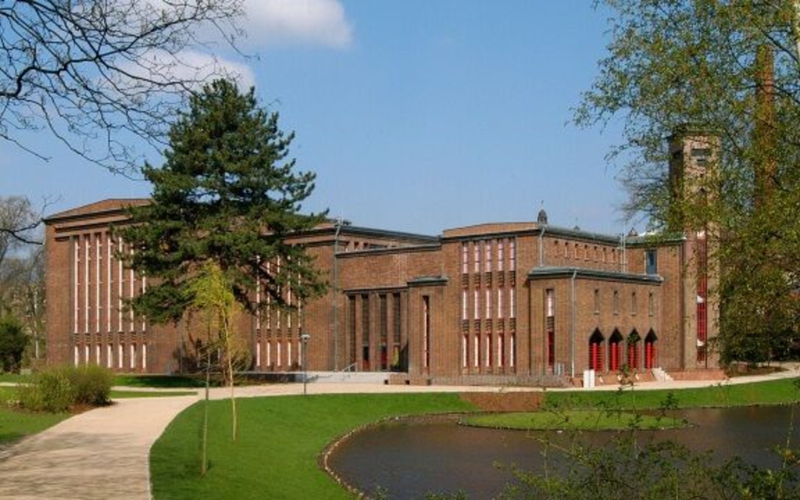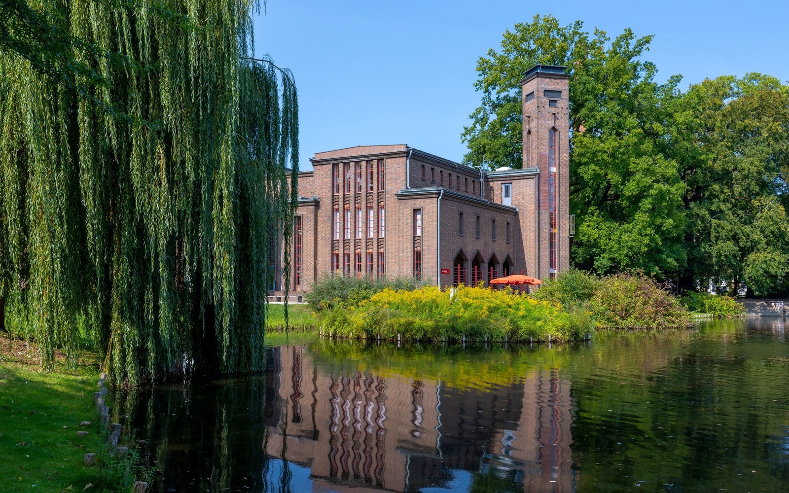 Braniborské zemské muzeum moderního umění Cottbus - Pohled na muzeum z parku, Foto: Marlies Kross, Lizenz: Brandenburgische Kulturstiftung
