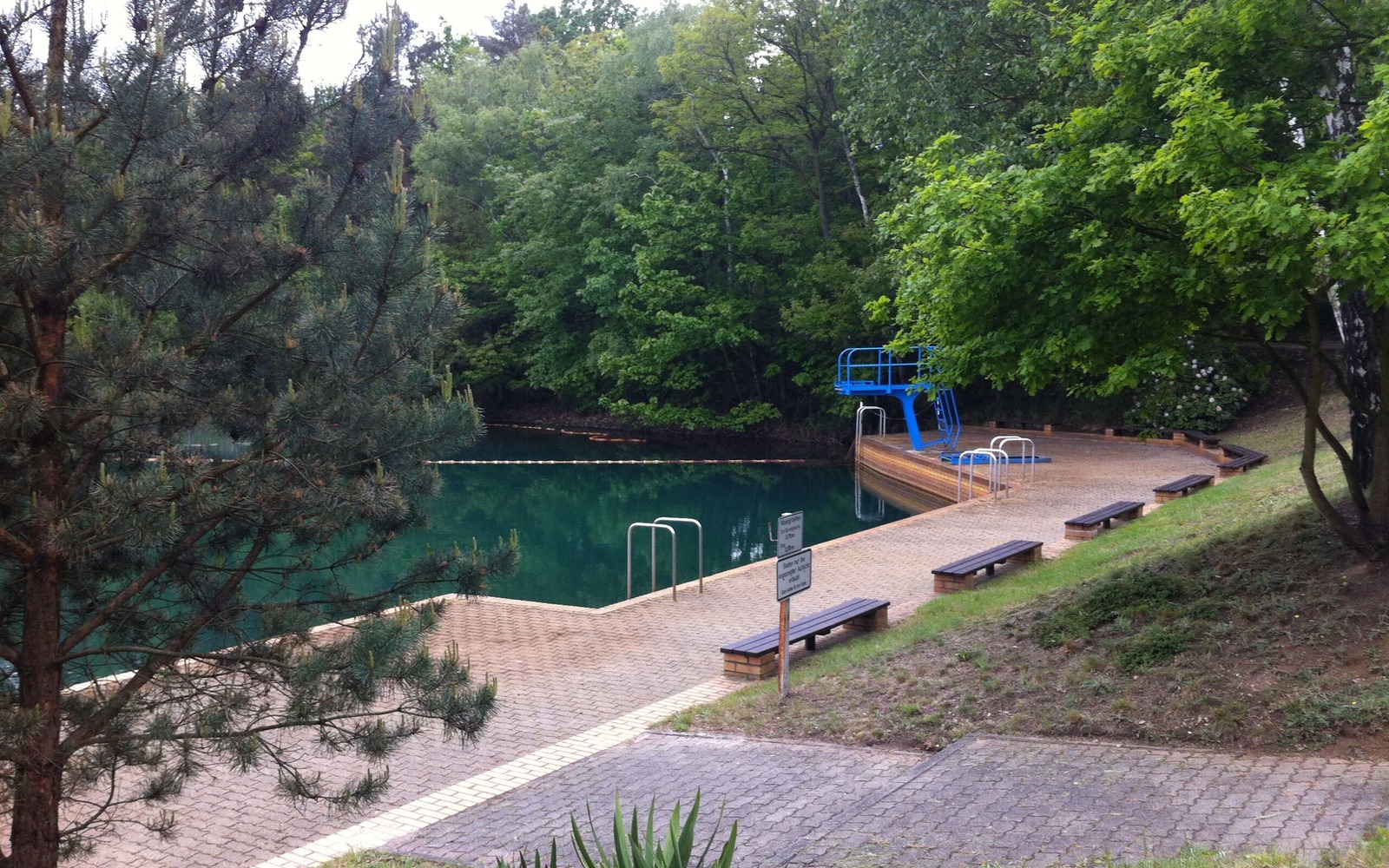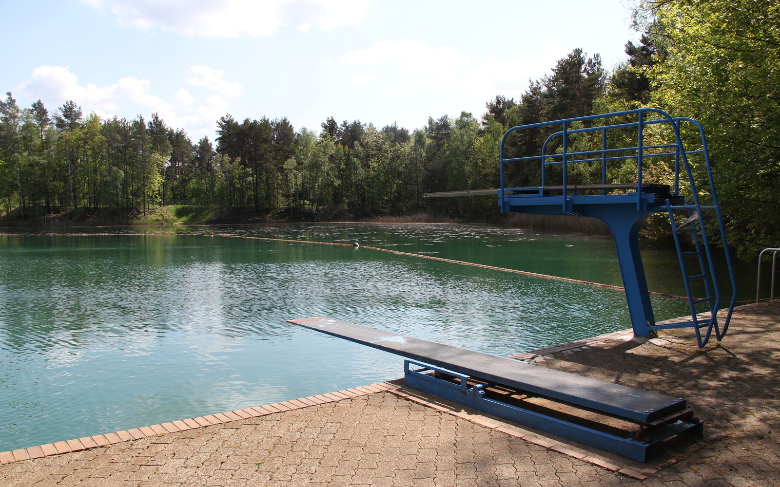 Lesní koupaliště Hosena - Plošina s lavicemi, žebříky a potápěčskou plošinou, Foto: Stadt Senftenberg