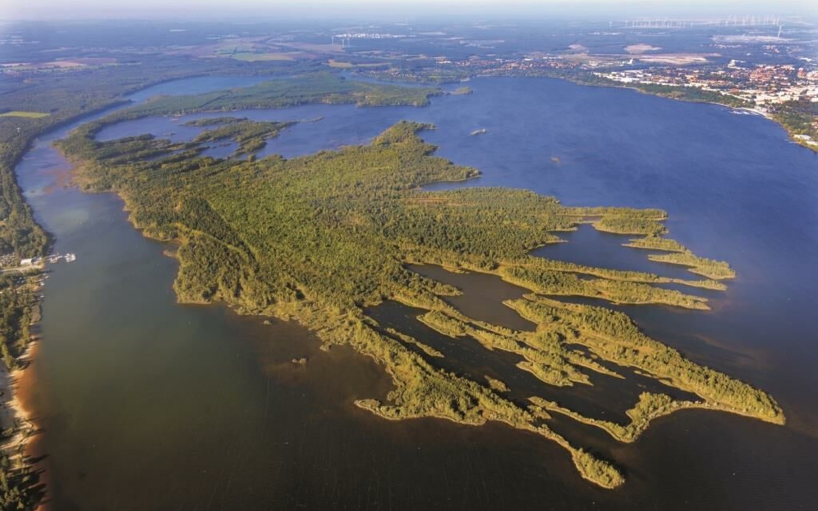 Jezero Senftenberger See s pohledem na zátoku Südsee – letecký pohled, Foto: Peter Radke