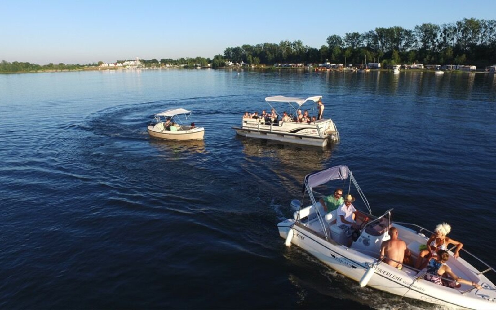Půjčovna Cruiser Craft u jezera Geierswalder See nabízí k pronájmu různé typy motorových plavidel. Zažijte nezapomenutelné chvíle v podobě plavby lodí po jezeře Geierswalder See. Služby: pronájem lodí bez průkazu do 15 PS, pronájem lodí s průkazem do 140 PS, párty lodě a pontony, šlapadla, výletní plavby, opravy a servis motorových lodí a lodních motorů, prosíme Vás o domluvu s předstihem.