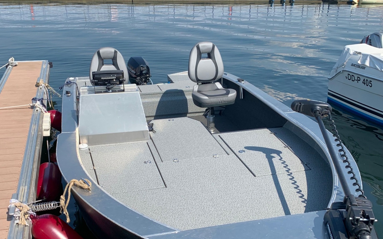 S hliníkovou lodí může každý na jezeře Bärwalder See strávit pár hodin, den anebo celou rybářskou dovolenou.