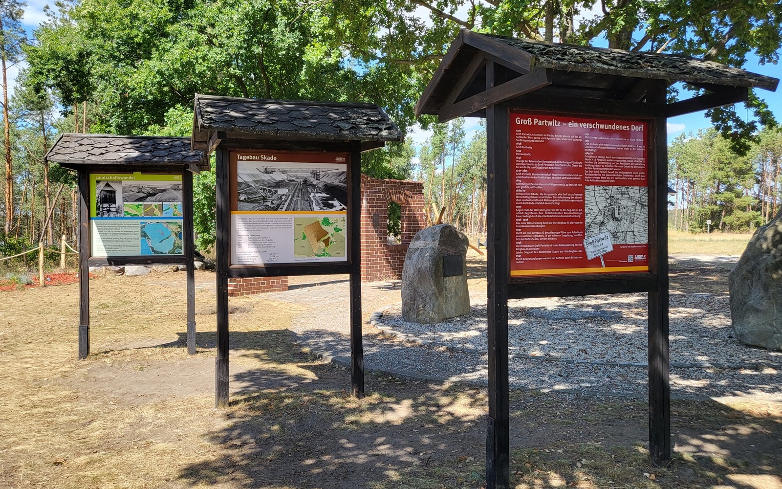 Der Partwitzer See entstand bis 2015 durch Flutung des ehemaligen Braunkohletagebaus Scado. Scado war ein Dorf, das dem benachbarten Tagebau Koschen in den 1960er-Jahren weichen musste.