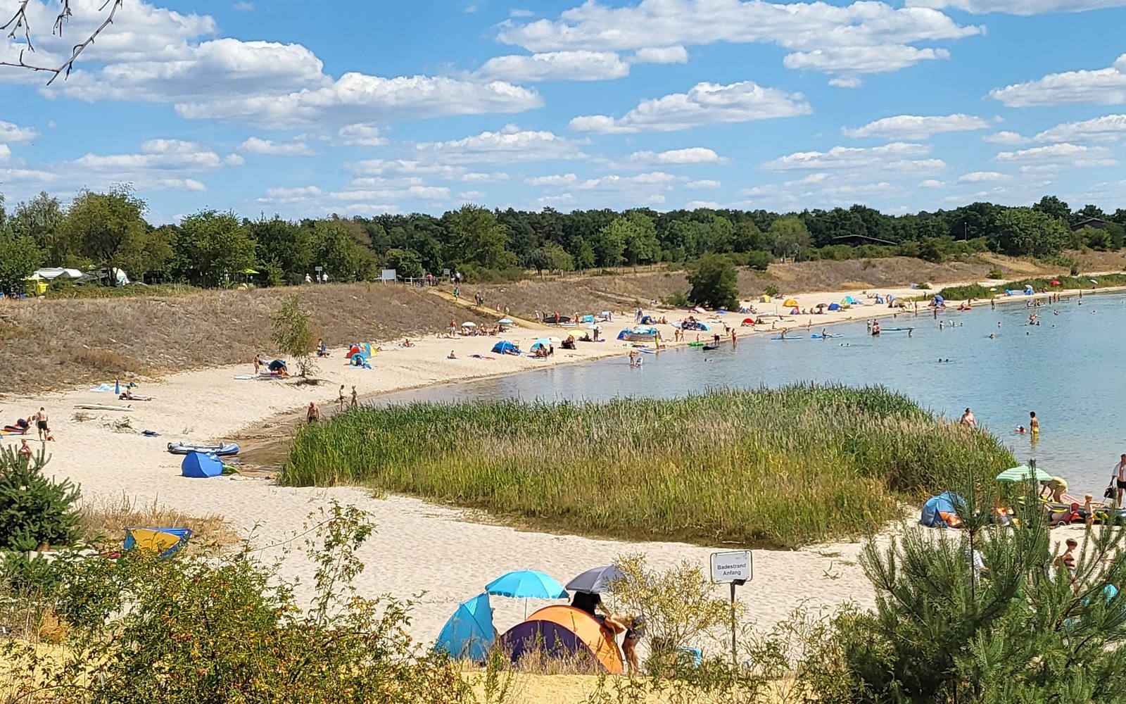 Großer Beliebtheit erfreut sich der attraktiv im Südbecken gelegene Strandbereich. Hier finden insbesondere Familien mit kleineren Kindern einen Badebereich vor, der relativ flach abfällt.