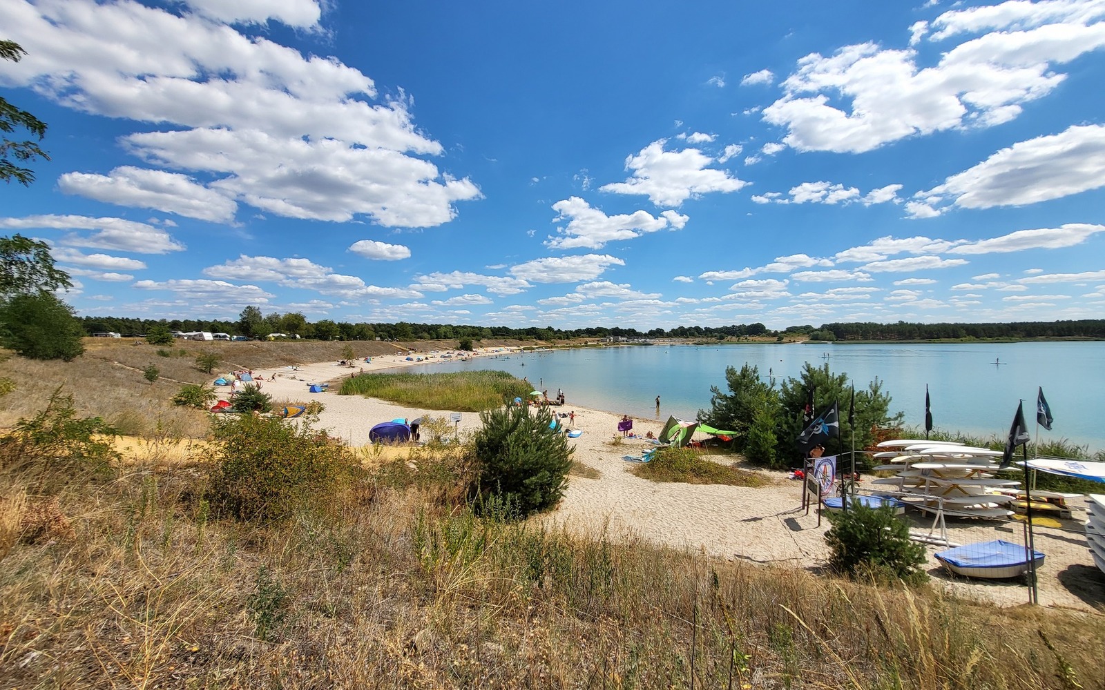 • Wind-/Foilsurfen (ganzjährig): mit Ausnahmen gestattetZugang über Badestrand nicht erlaubt, Erlaubnis gilt nur für festegelegten Korridor westlich des Strandes, weitere Informationen über Kalayaan Sail & Surf Lausitzer Seenland