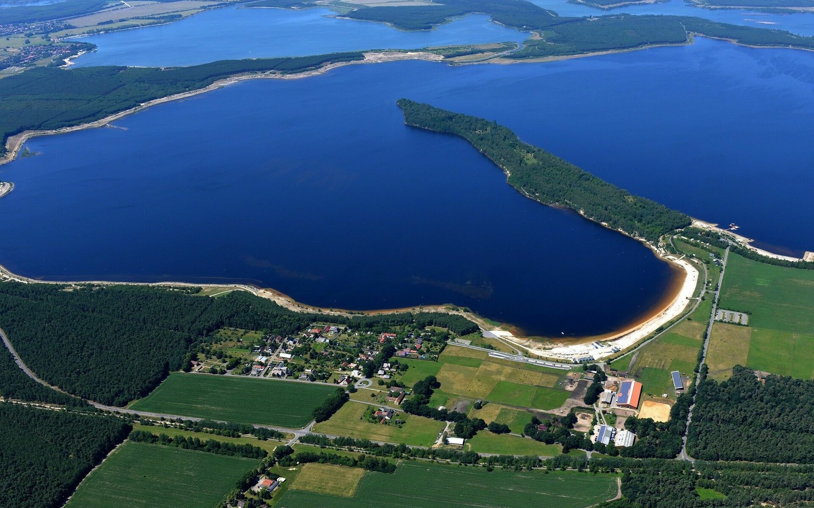 Die ca. 2,5 Kilometer lange Halbinsel Scado ist besonders markant und dem Naturschutz vorbehalten. Ein Wahrzeichen des Sees ist seit 2006 das erste schwimmende Ferienhaus im Lausitzer Seenland.