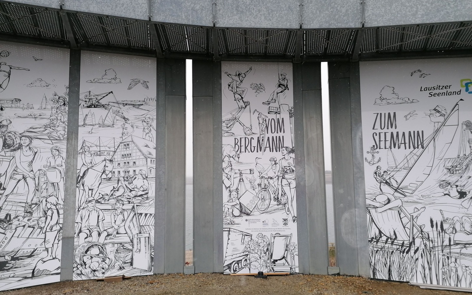 Illustrationen "Vom Bergmann zum Seemann" an der Victoriahöhe, Foto: Katja Wersch, Lizenz: Tourismusverband Laustizer Seenland e.V.