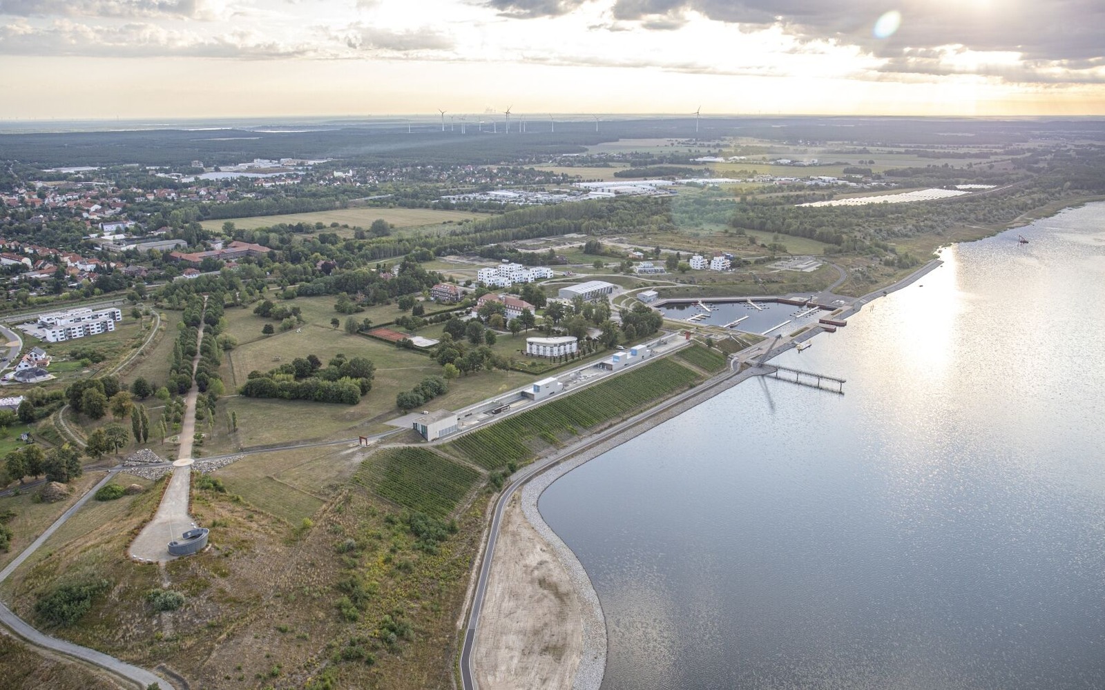 Blick von der Victoriahöhe auf den Großräschener See, Foto: Katja Wersch, Lizenz: Tourismusverband Laustizer Seenland e.V.