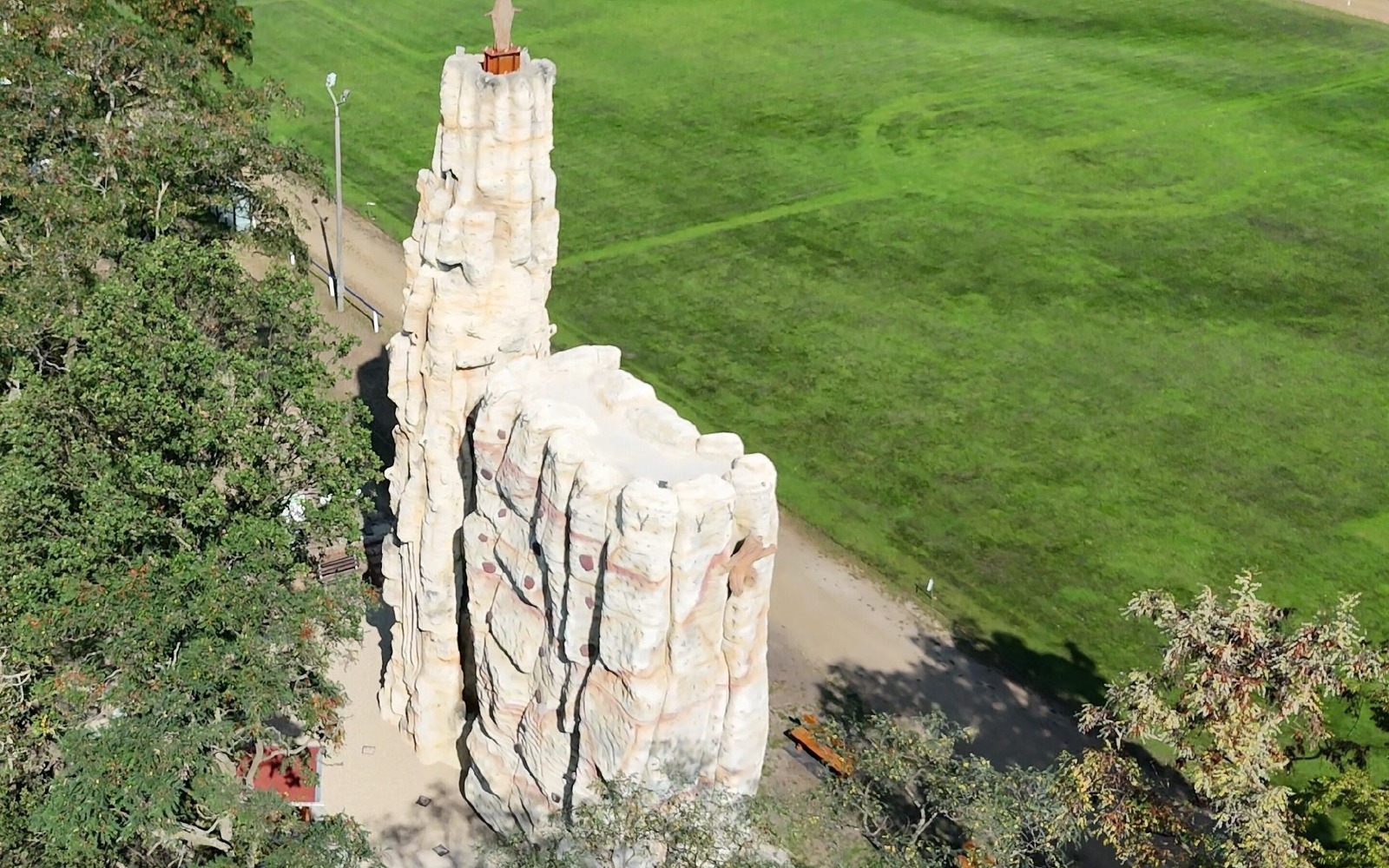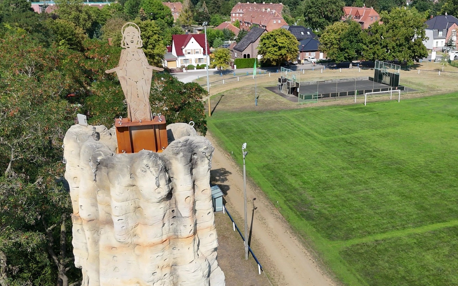 In nur 6 Monaten wurde ein echt herausragender Hingucker geschaffen. Der fast 20 Meter hohe "Turm", die sogenannte "Schulter" mit einer Höhe von 13 Metern und die gesamte Kletteranlage konnten im Anschluss an die Bergfreunde übergeben werden. Die Landmarke wird gekrönt von einer Gipfelfigur der Heiligen Barbara, Schutzpatronin der Bergleute und darstellende Verbindung zwischen der langen Bergbautradition und der touristischen Zukunft des Lausitzer Seenlandes. Der den Felsen in der Sächsischen Schweiz nachempfundene Turm bietet alle Facetten der Kletterei in den sächsischen Schwierigkeitsgraden III bis IXa an insgesamt 41 Kletterwegen. Zusätzlich flankieren den Turm noch 3 Boulderfelsen sowie eine Trainings-Boulderwand. Hier kann in Absprunghöhe ohne Seil geklettert werden. Der öffentlich zugängliche SEDLITZER TURM dient nicht nur der Kletterjugend, sondern bietet allen Kletterfreunden Spaß und Herausforderung.