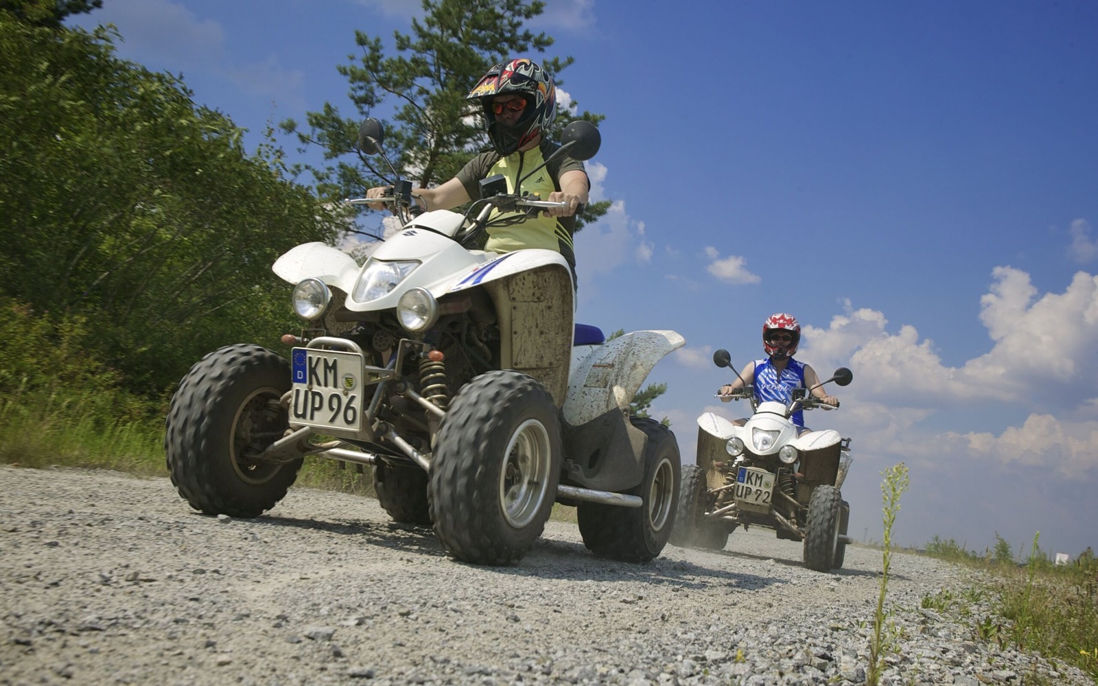 - Es besteht eine Helmpflicht, diese werden vom Quadcenter gestellt. Bitte achten Sie darauf, dass Sie einen geschlossenen Helm mitbringen, wenn Sie ihren eigenen Helm verwenden möchten.