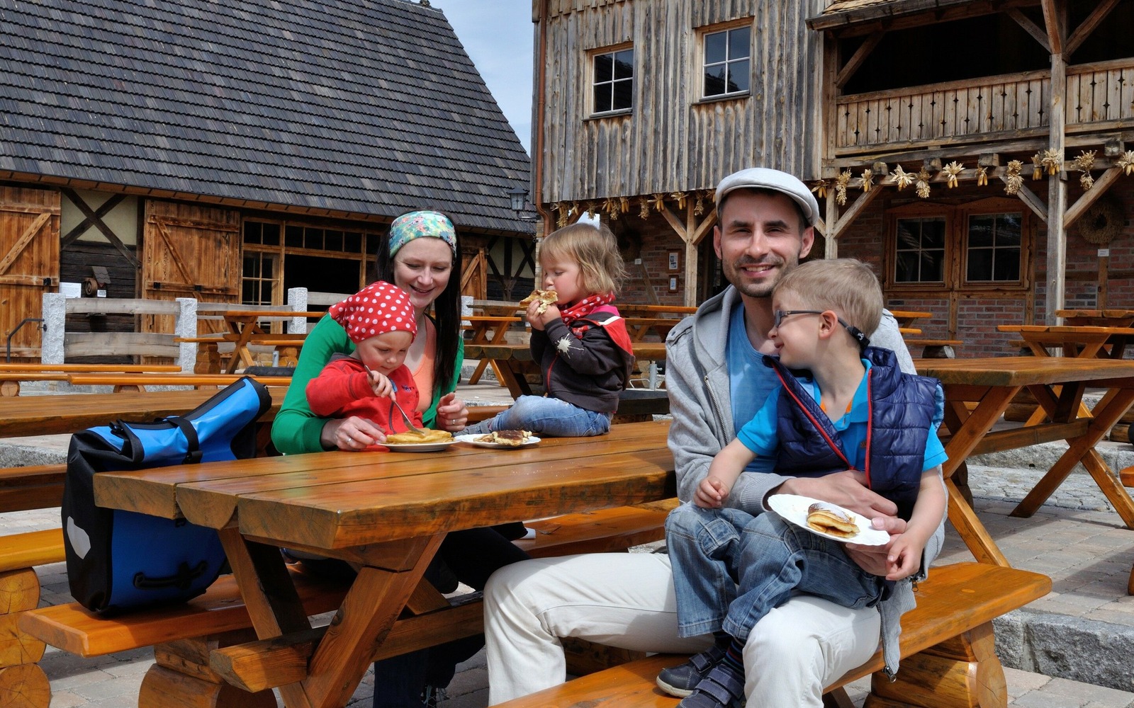 Plinse essen auf dem Erlebnishof Krabat-Mühle, Foto: Nada Quenzel, Lizenz: Tourismusverband Lausitzer Seenland e.V.